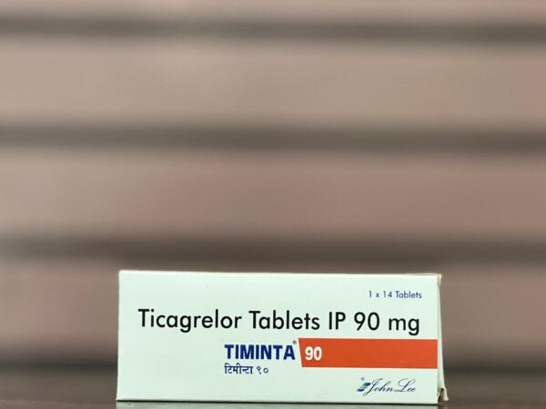 Ticagrelor 90mg Tablets (branded as Timinta 90) is an antiplatelet medication (blood thinner) that prevents platelets from sticking together and forming harmful blood clots. It is used to reduce the risk of heart attack, stroke, or cardiovascular death in patients with acute coronary syndrome (ACS), unstable angina, or a history of heart attack, often in combination with low-dose aspirin.