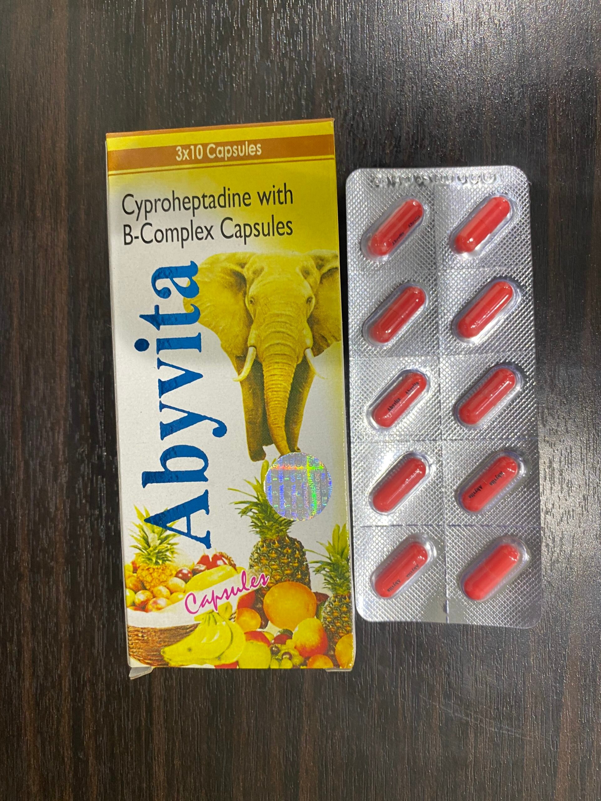 Abyvita capsules are a multivitamin/mineral dietary supplement often used as an appetite stimulant and to support healthy weight gain, especially in adults with poor appetite or underweight conditions.