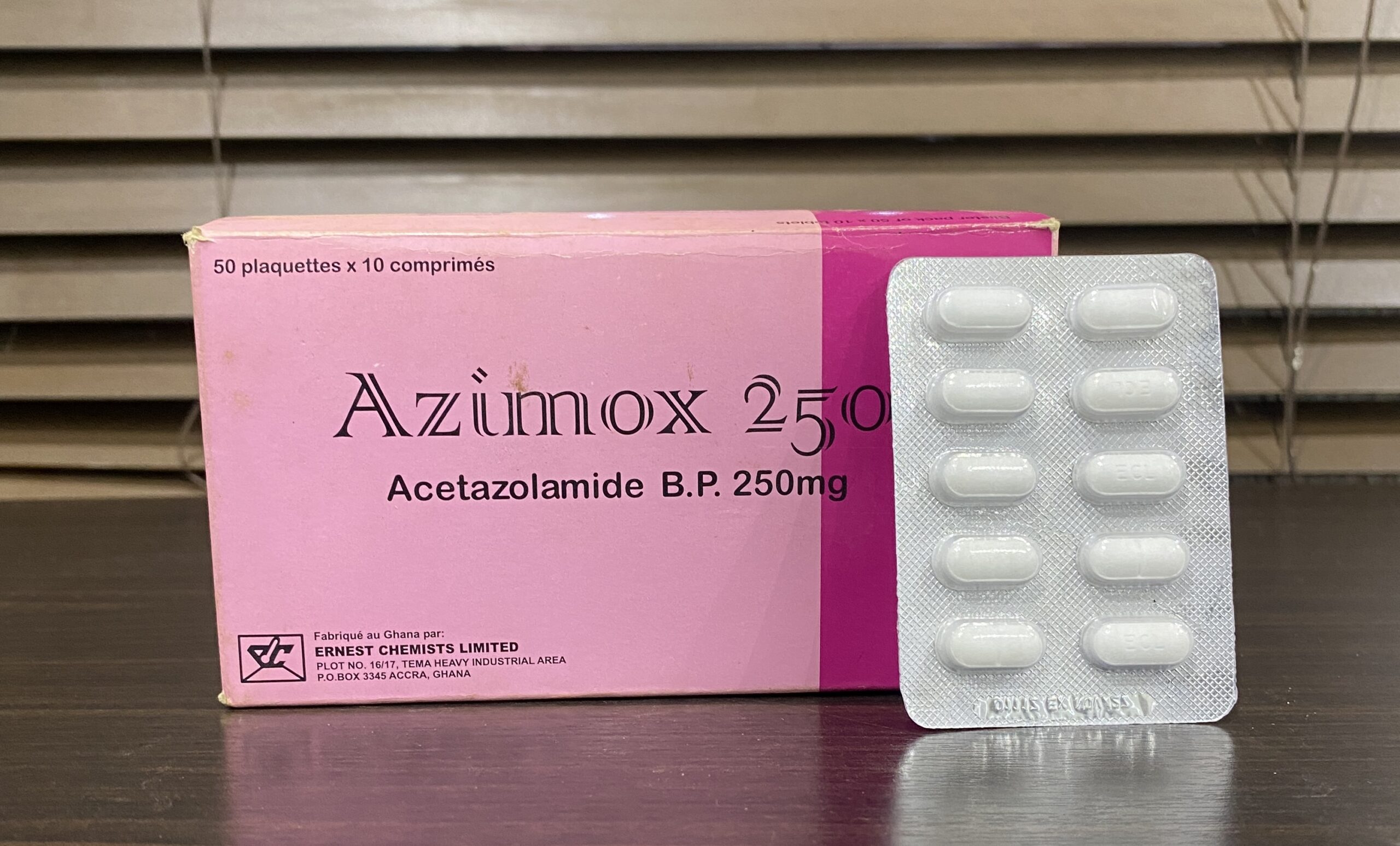 Acetazolamide, marketed as Azimox 250 mg, is a carbonic anhydrase inhibitor used to treat conditions such as glaucoma (reducing intraocular pressure), edema associated with heart failure or medication, certain seizure disorders, and to prevent or reduce symptoms of altitude sickness.