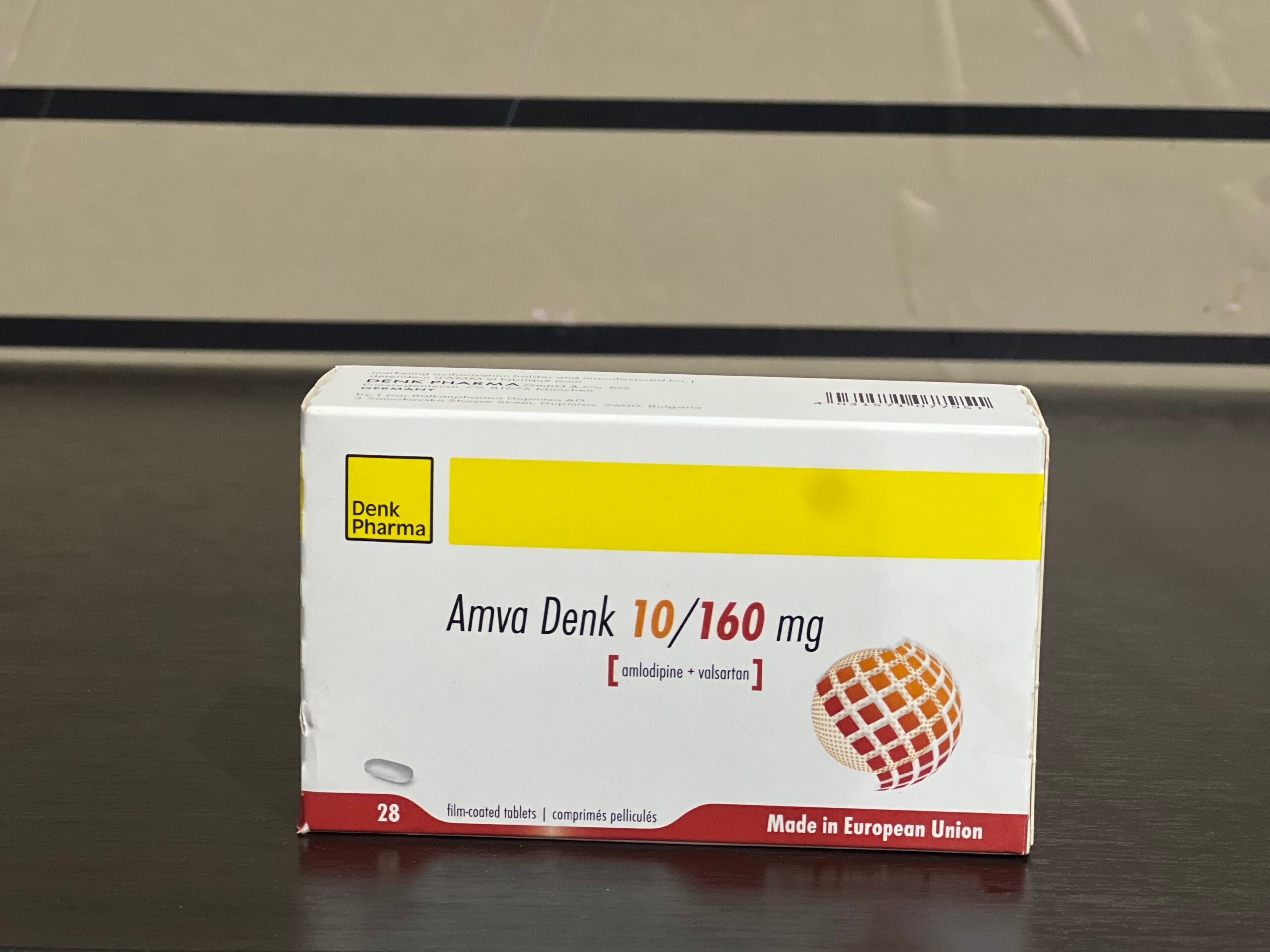 Amva-Denk 10/160 is a fixed-dose combination antihypertensive medication used to treat high blood pressure (essential hypertension). It contains two agents that work synergistically to relax blood vessels and reduce blood pressure, lowering the risk of heart attack, stroke, and kidney complications.