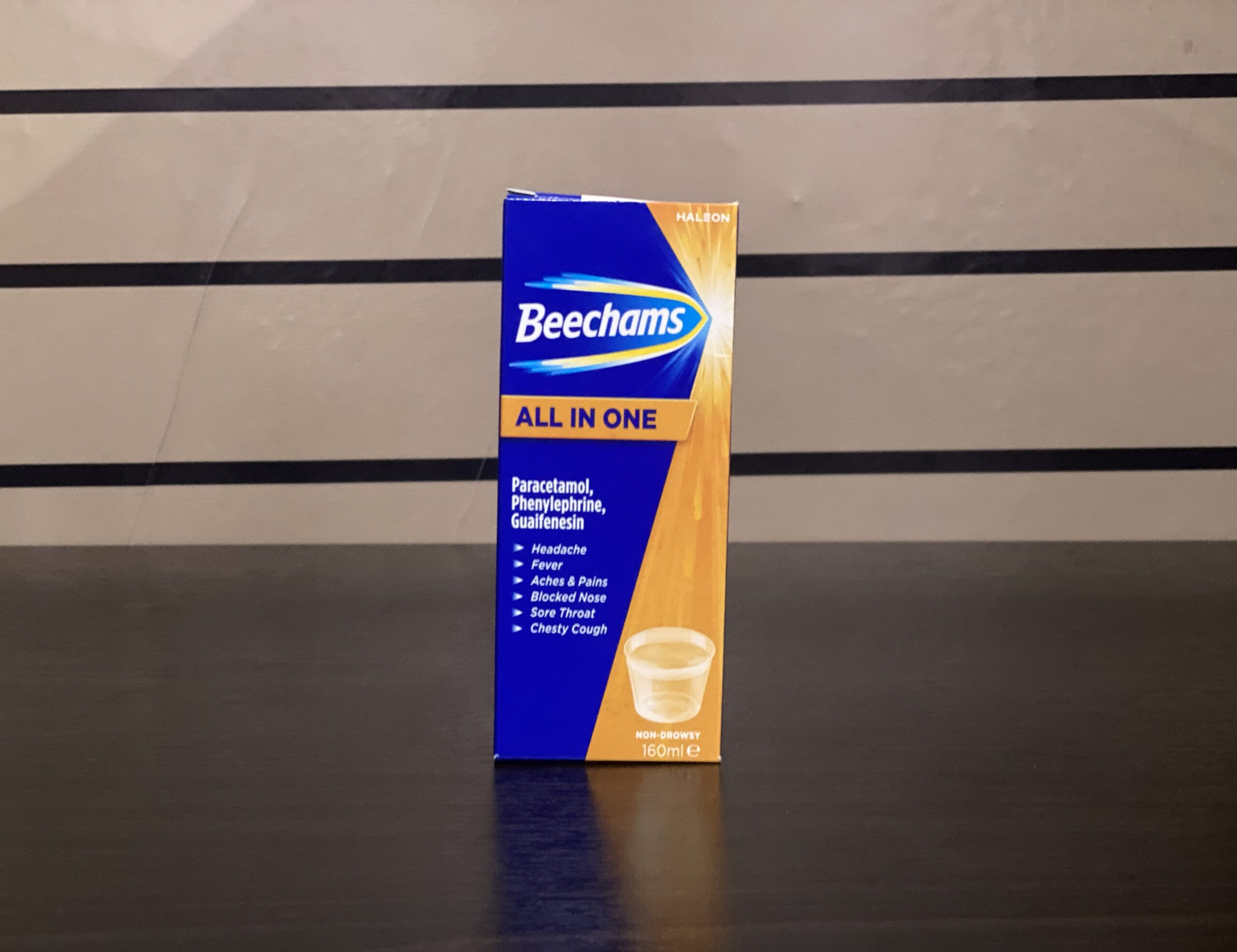 Beechams All-in-One Syrup is an over-the-counter medication formulated to provide symptomatic relief from cold and flu symptoms, including chesty coughs, nasal congestion, headaches, and sore throats.