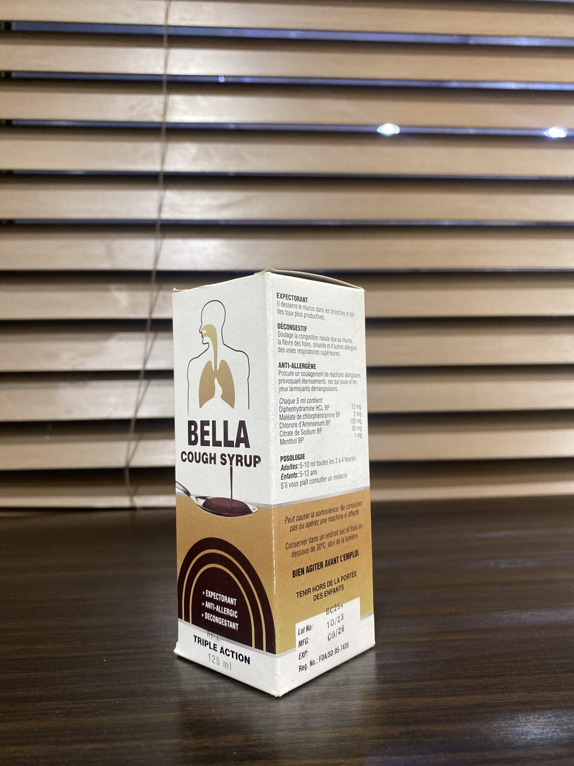 Bella Cough Syrup is an over-the-counter medication providing relief from cough symptoms.