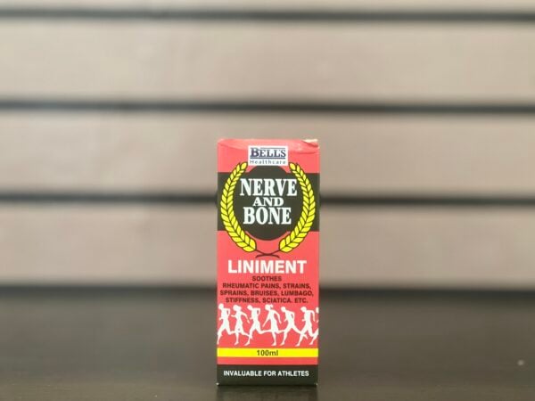 Bell’s Nerve & Bone Liniment is a topical solution designed to alleviate muscle and joint discomfort associated with conditions such as backache, sciatica, lumbago, rheumatic pain, strains, and stiffness.