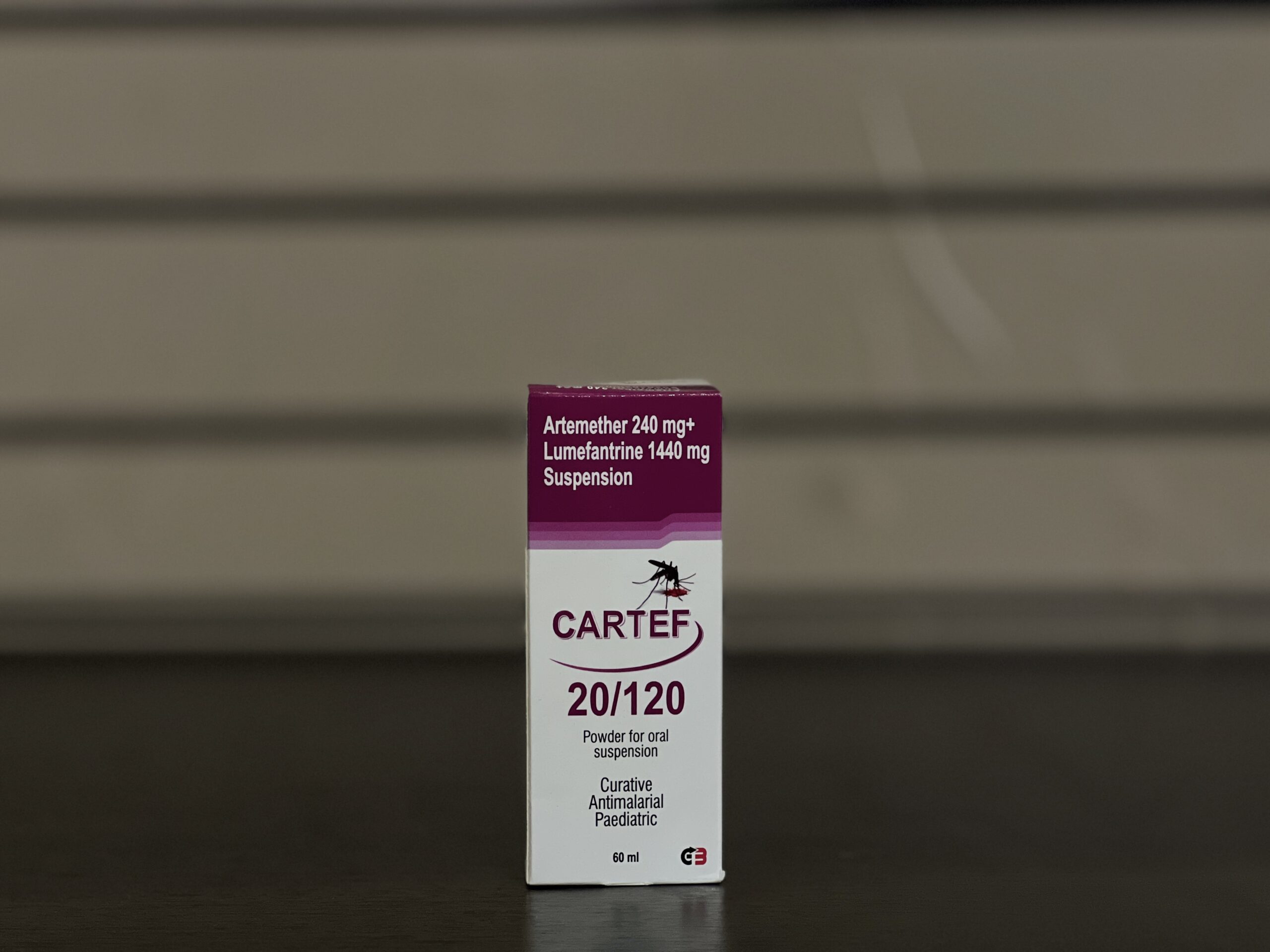 - Lumefantrine 120 mg per 5 mL (total 1440 mg per 60 mL)
