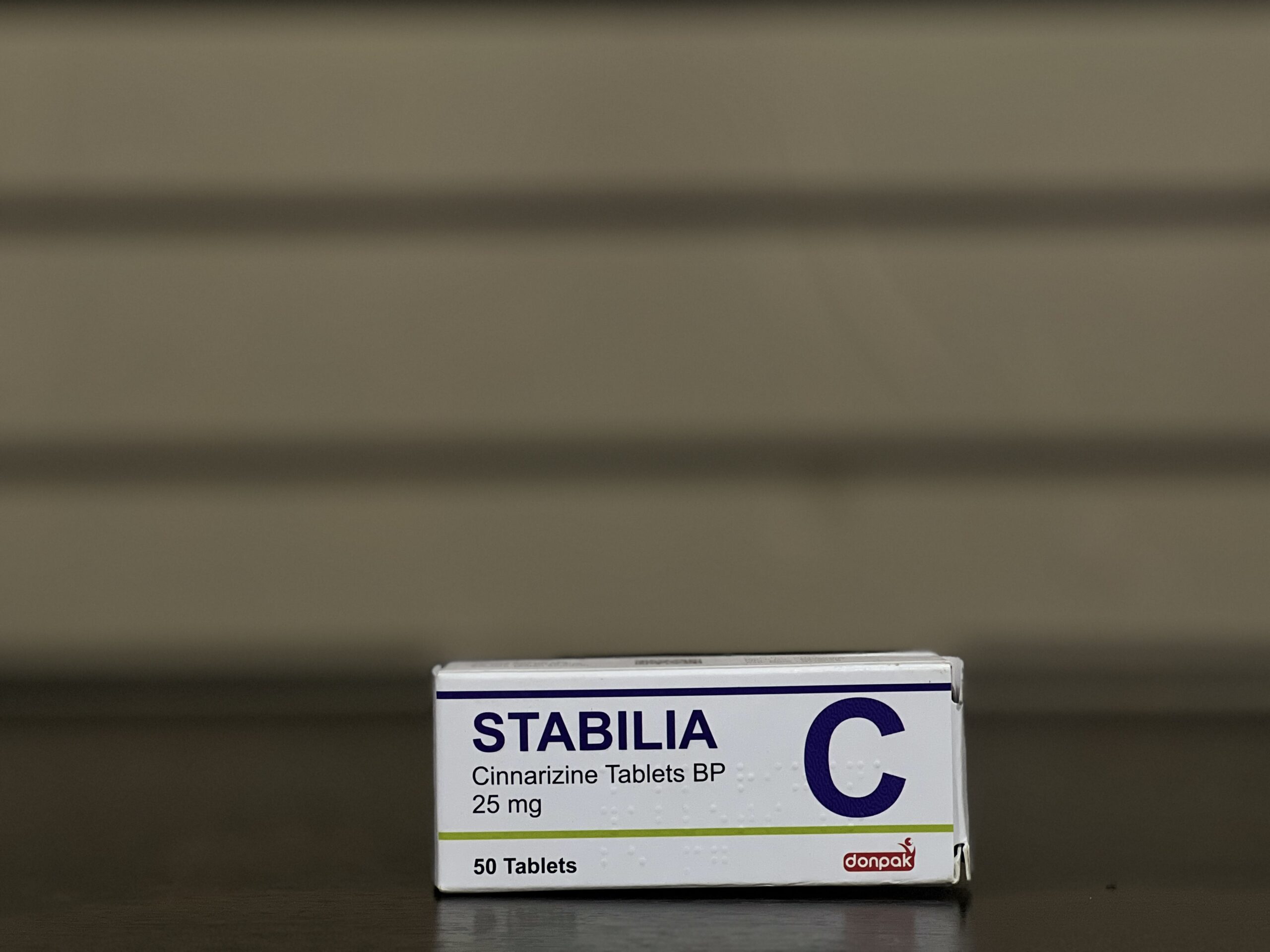Cinnarizine is a medication used primarily for motion sickness, vertigo, and other vestibular disorders (i.e., dizziness, inner ear balance problems). It acts as an antihistamine combined with a calcium-channel blocker, reducing vestibular responses and improving blood flow in the inner ear.