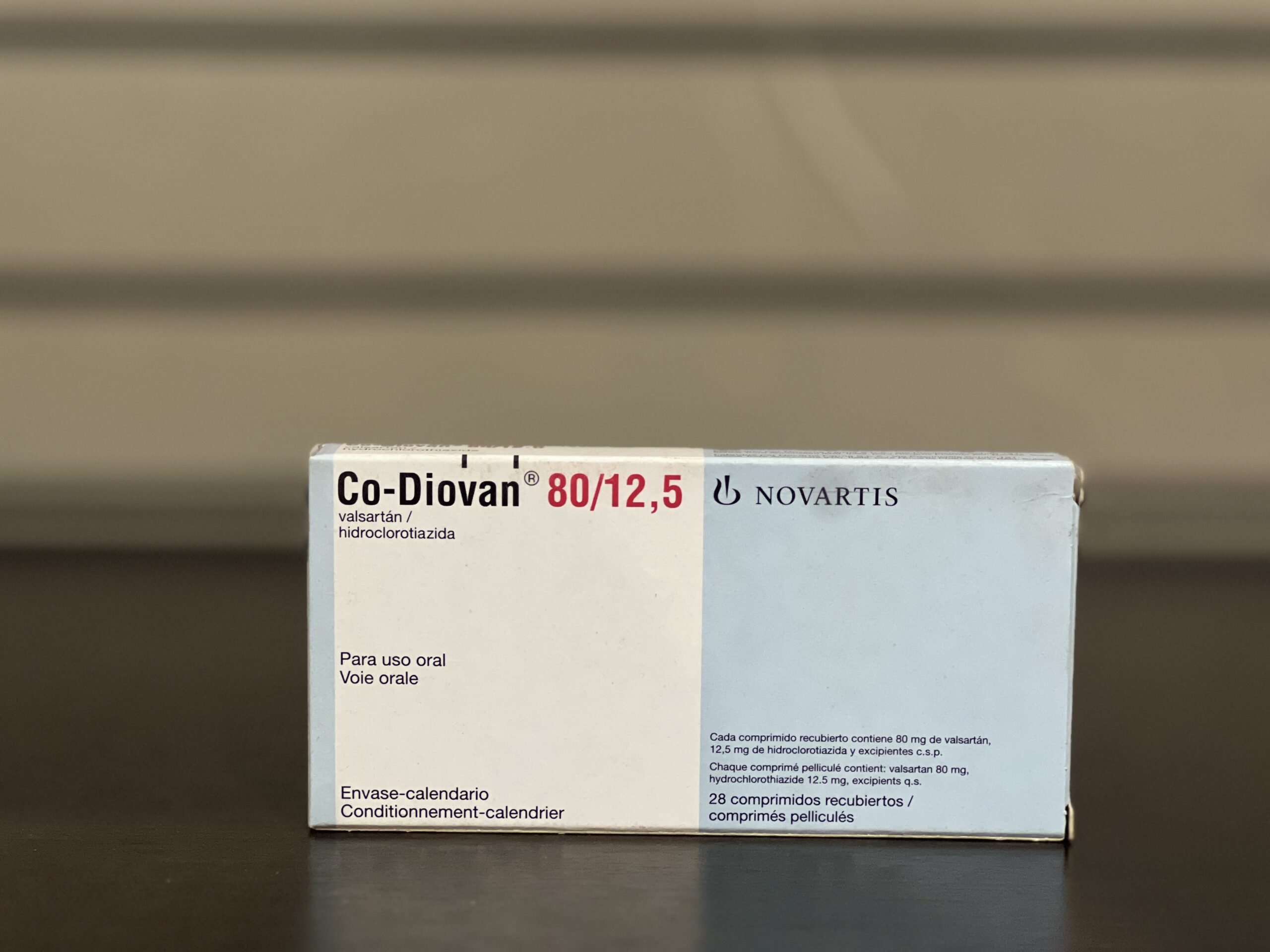 Valsartan 80 mg – an angiotensin II receptor antagonist Hydrochlorothiazide (HCTZ) 12.5 mg – a thiazide diuretic