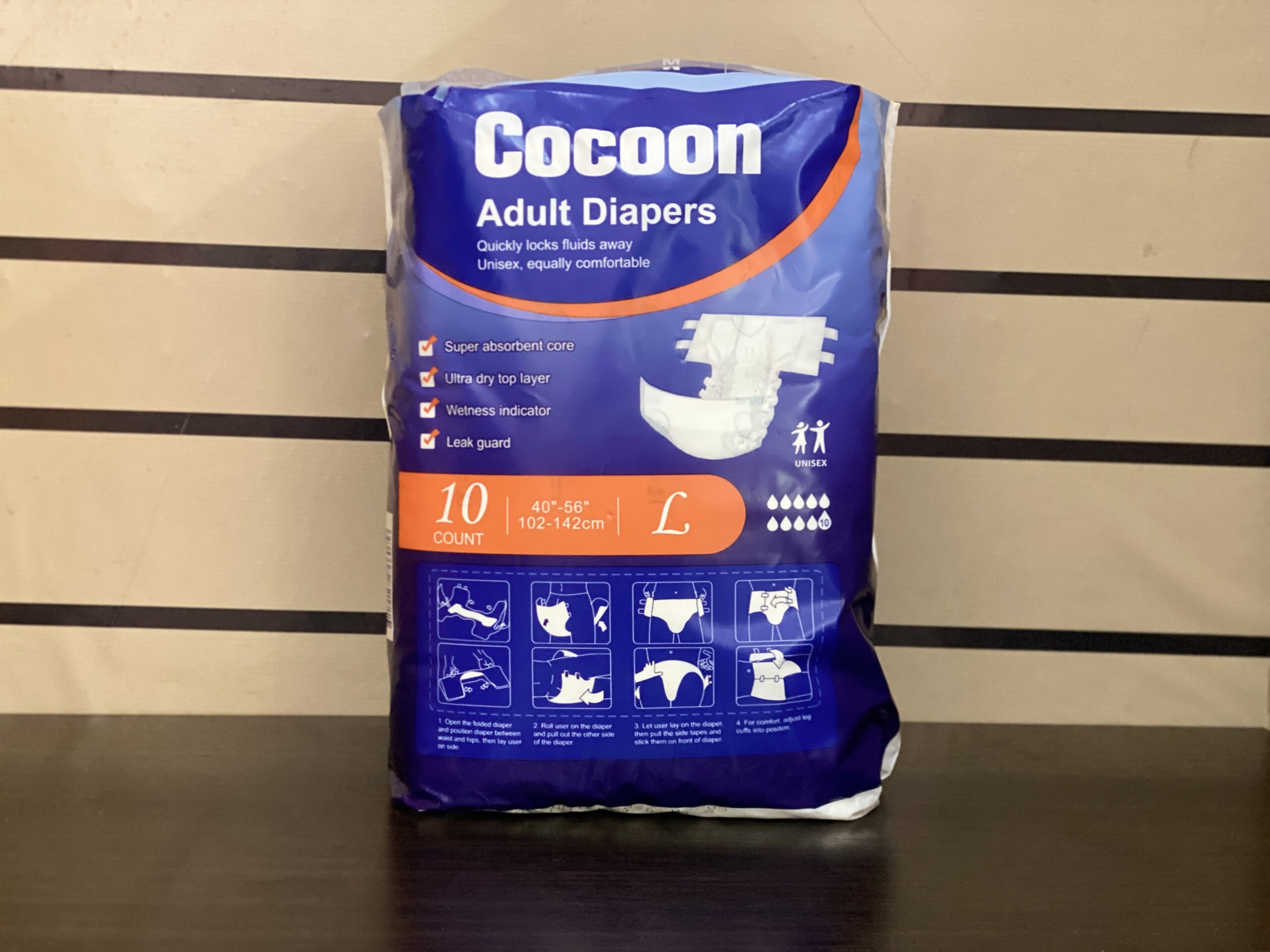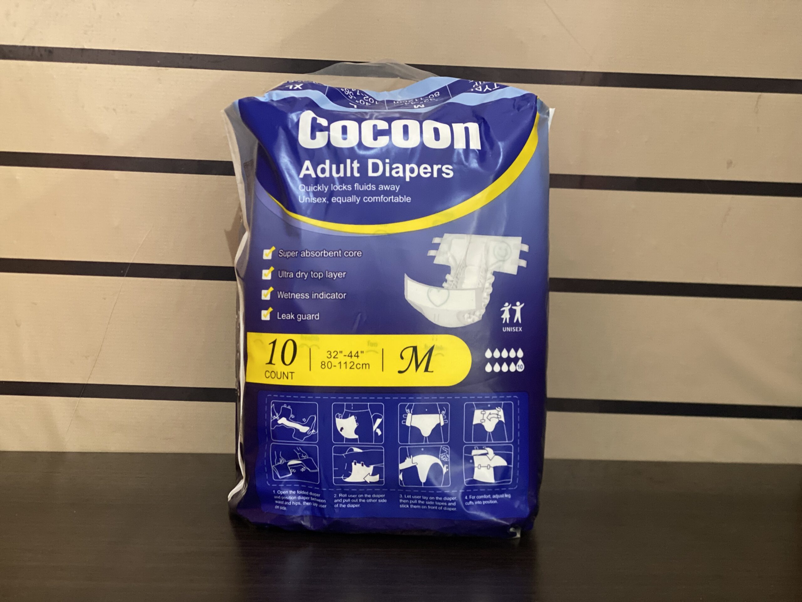 Cocoon Adult Diapers are disposable incontinence products designed for adults with moderate to heavy urinary or fecal incontinence. They provide protection, comfort, and hygiene, and are ideal for bedridden patients, elderly individuals, or those with mobility issues.