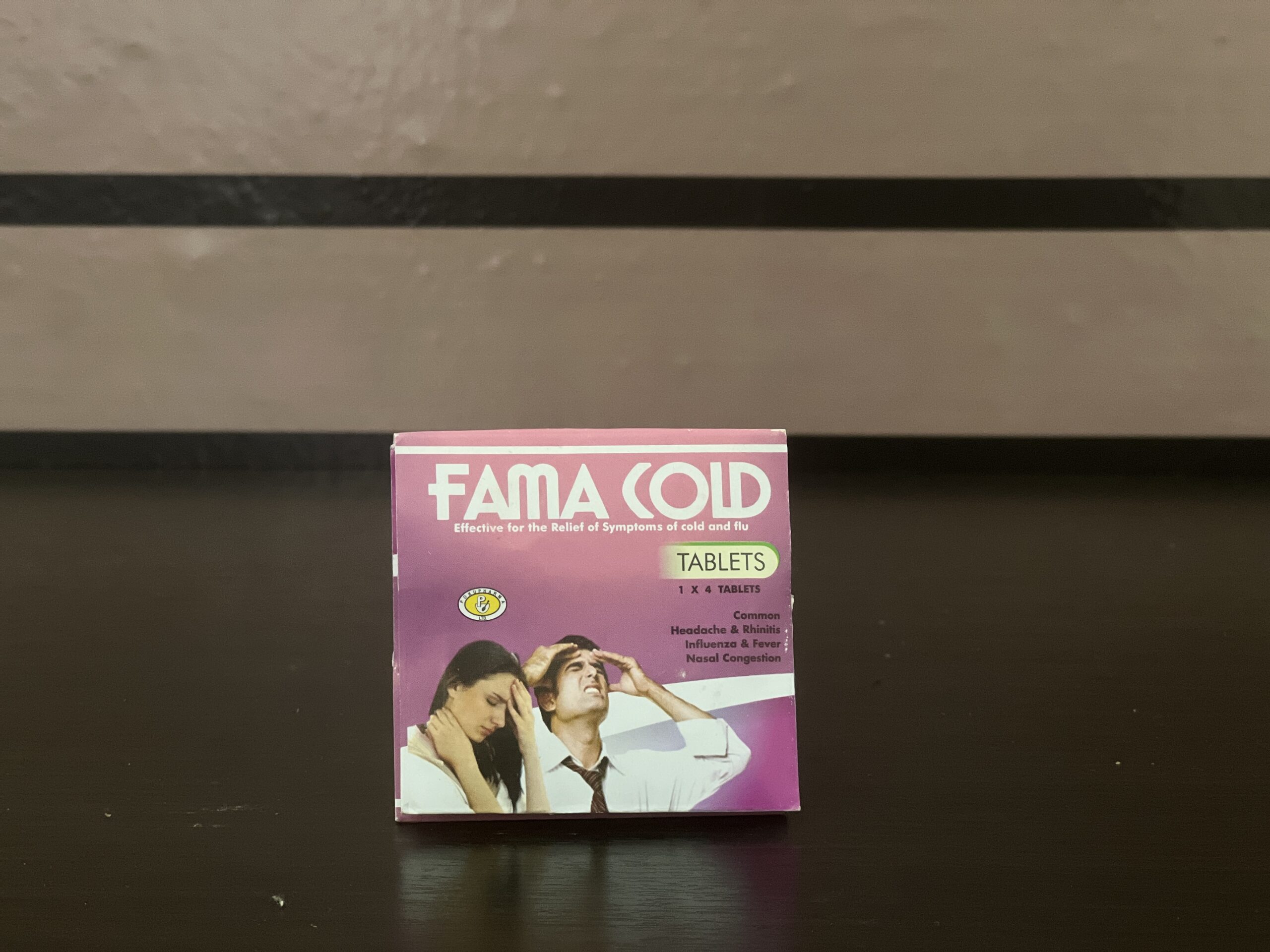 Fama Cold Tablets are a combination medication used for the relief of cold and flu symptoms, including nasal congestion, headaches, body aches, fever, and sneezing. It combines analgesic, antihistamine, and decongestant properties for comprehensive symptom management.