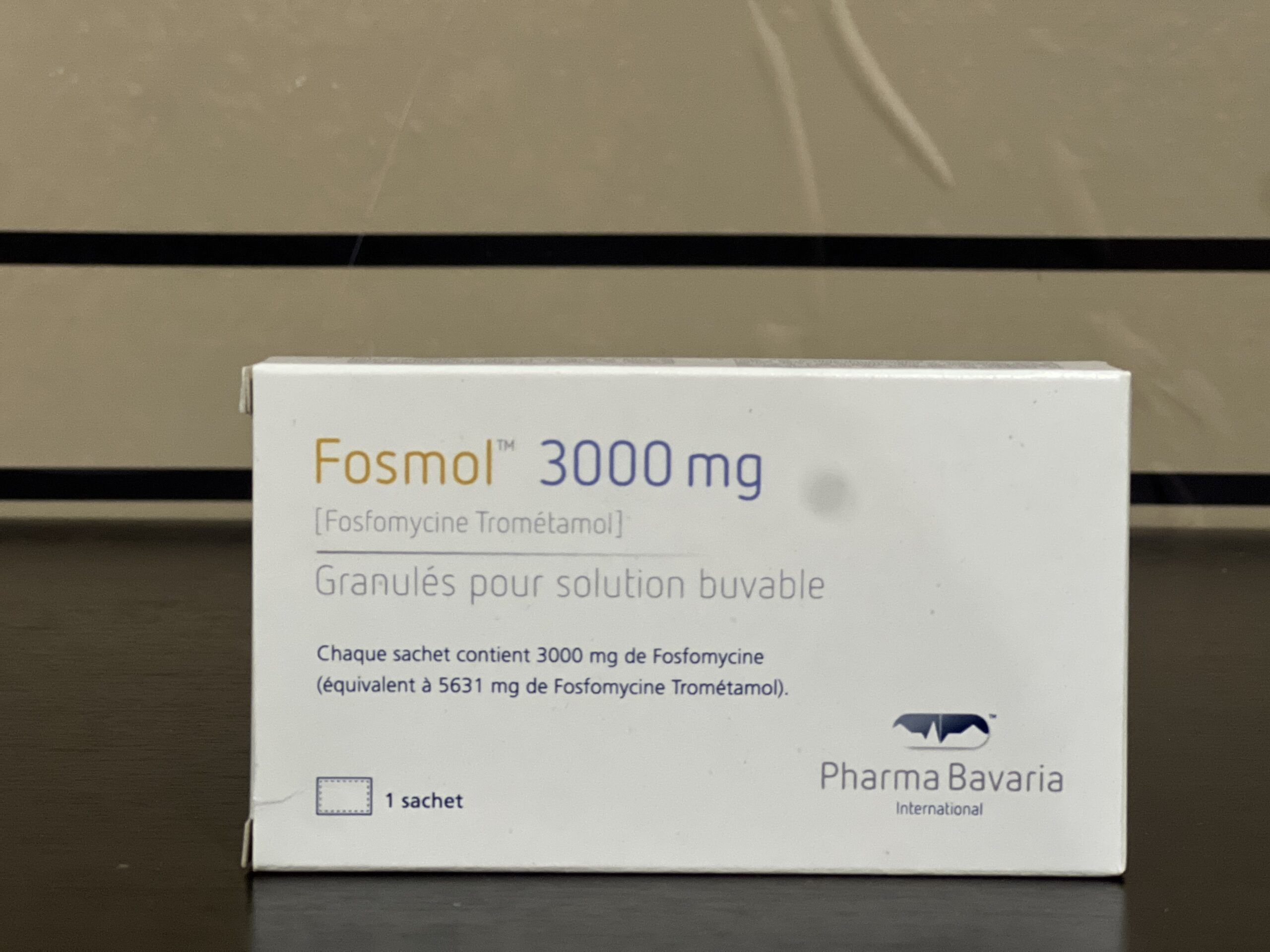 Fosmol 3000mg tablets are white to almost white, oval shaped tablets with breakline on one side. Available in packs of 3 tablets.