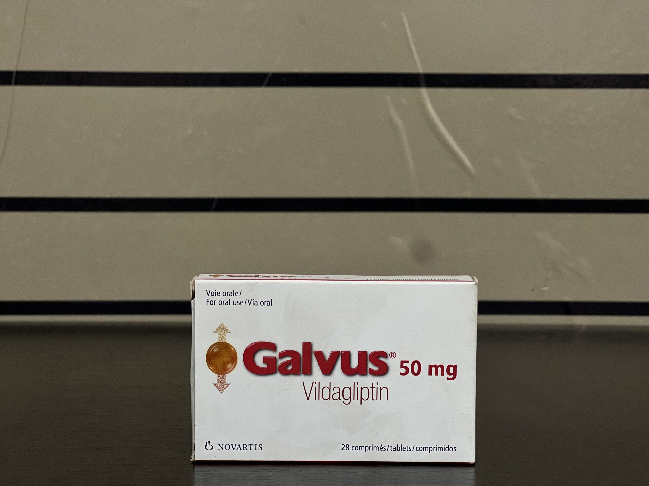 Galvus 50mg is an oral antidiabetic medication containing Vildagliptin as the active ingredient. It is used to control blood glucose levels in adults with type 2 diabetes mellitus (T2DM). Vildagliptin works by enhancing the body’s natural ability to regulate blood sugar through the DPP-4 inhibition mechanism, which increases incretin hormone activity, promoting insulin release and reducing glucagon secretion after meals.