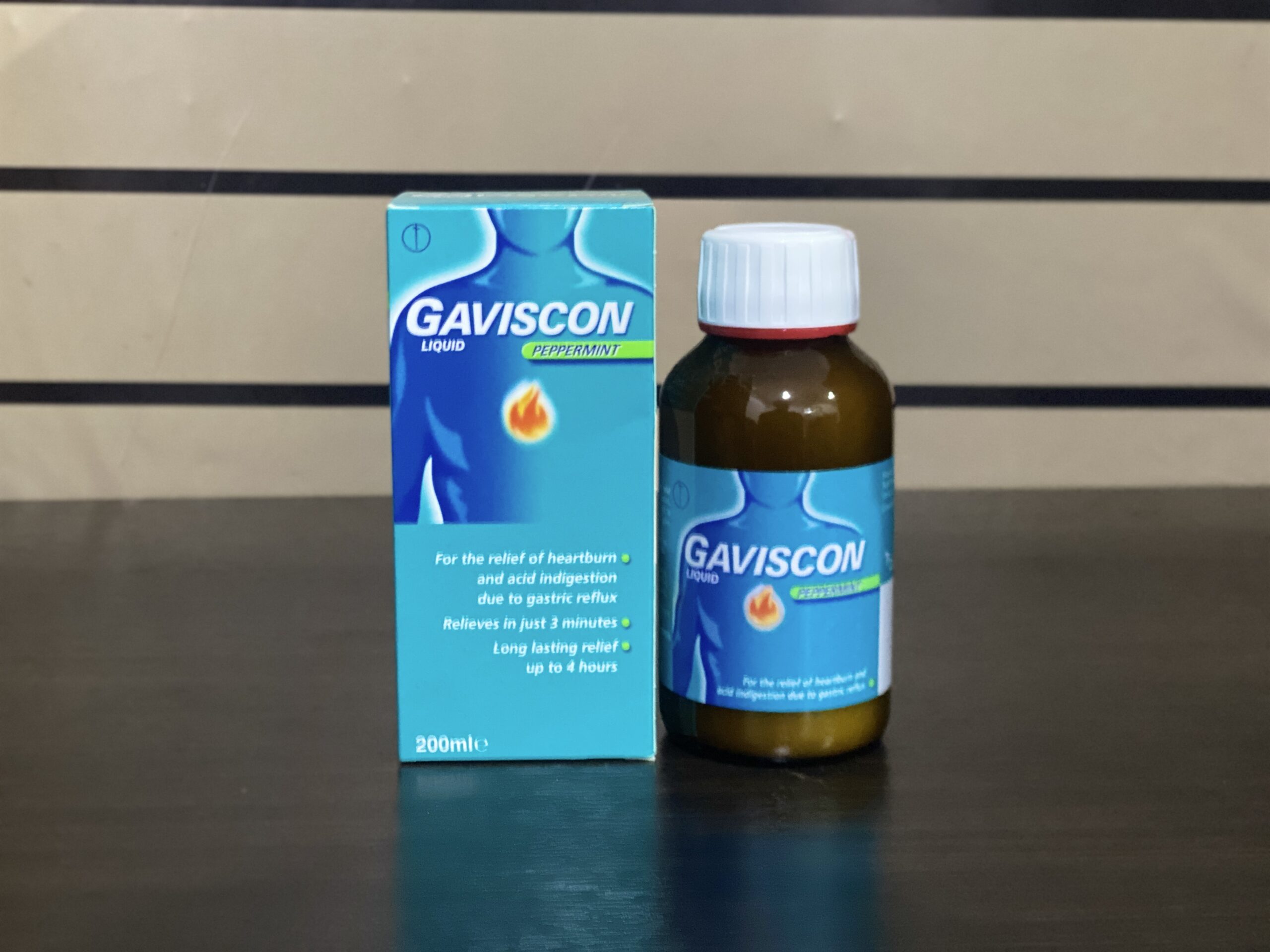 Gaviscon Peppermint Suspension is a fast-acting liquid antacid designed to relieve heartburn, indigestion, and acid reflux by neutralizing excess stomach acid and forming a protective barrier over the stomach contents.