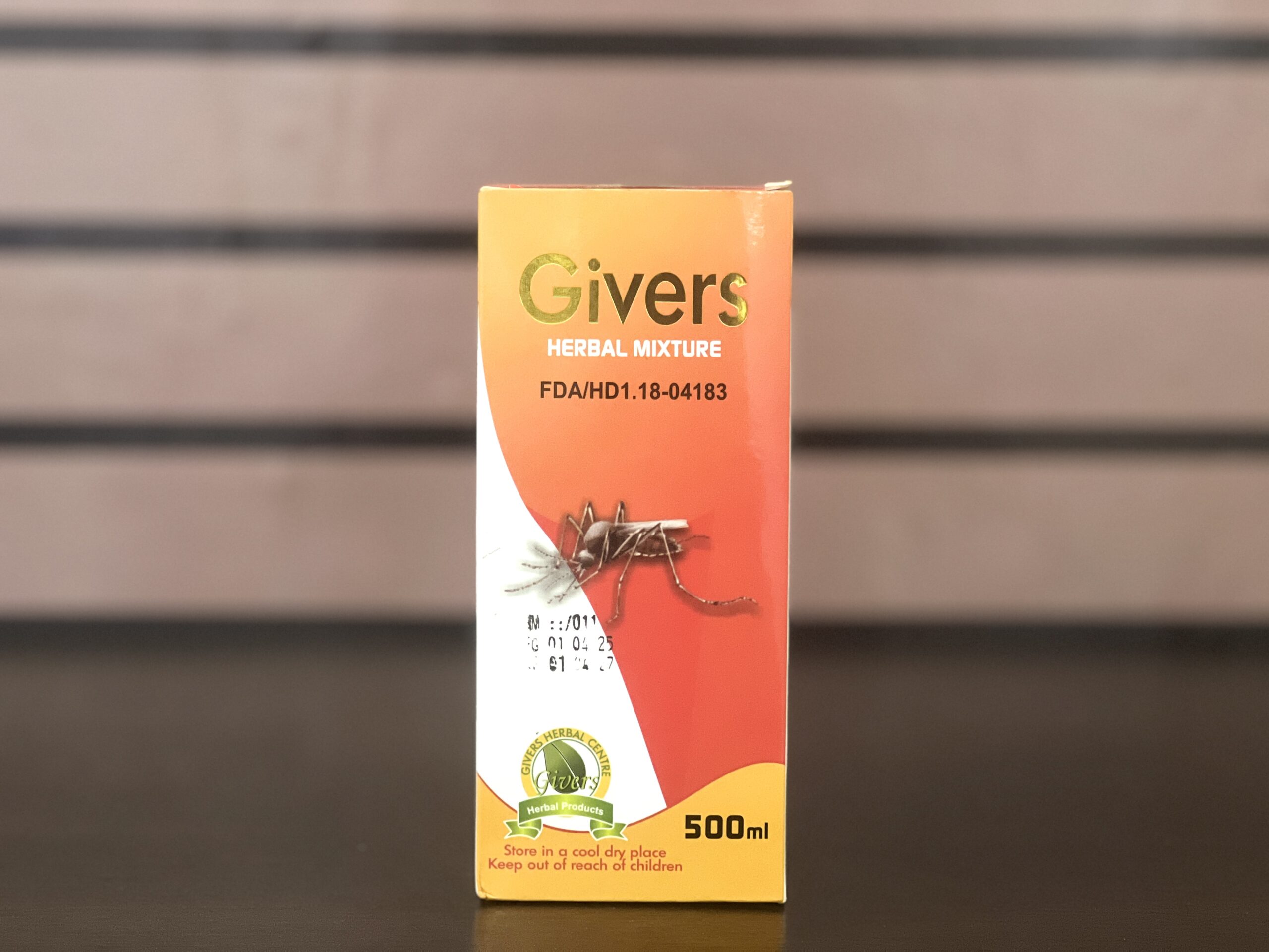 Givers Herbal Mixture (500ml by Givers Herbal Centre / Givers Industries Ltd.) is a traditional Ghanaian herbal liquid remedy formulated as a natural treatment for malaria, typhoid fever, and loss of appetite. It is promoted as a 100% herbal product with no chemicals, additives, flavorings, yeast, or preservatives, using plant extracts to support symptom relief and recovery in these conditions. It is a popular, affordable OTC herbal mixture in Ghana (Accra) pharmacies and herbal centers for short-term use in feverish illnesses and appetite stimulation.