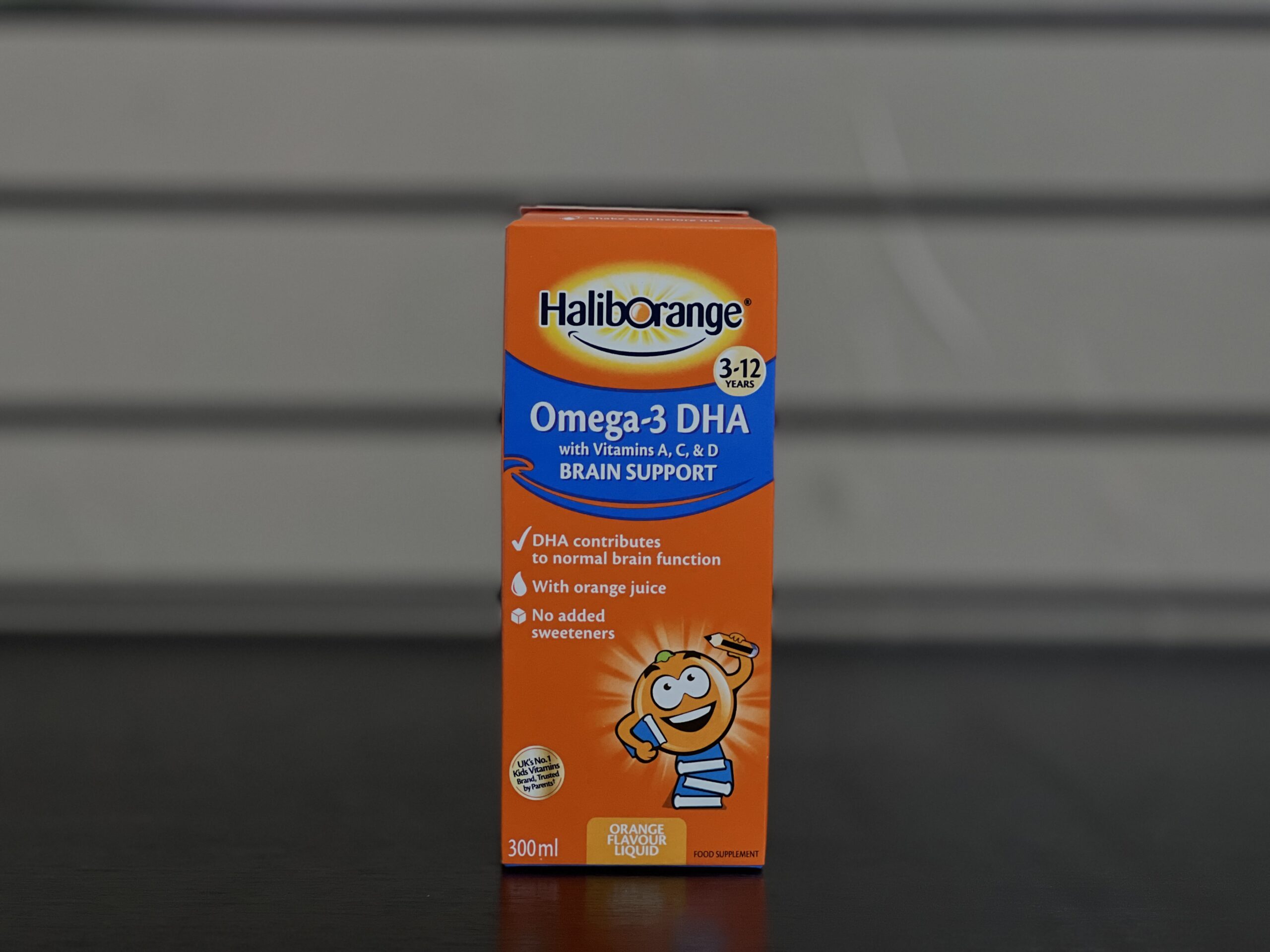 Haliborange Omega-3 DHA Brain Support Syrup is available in a 300 ml bottle with an orange flavor.
