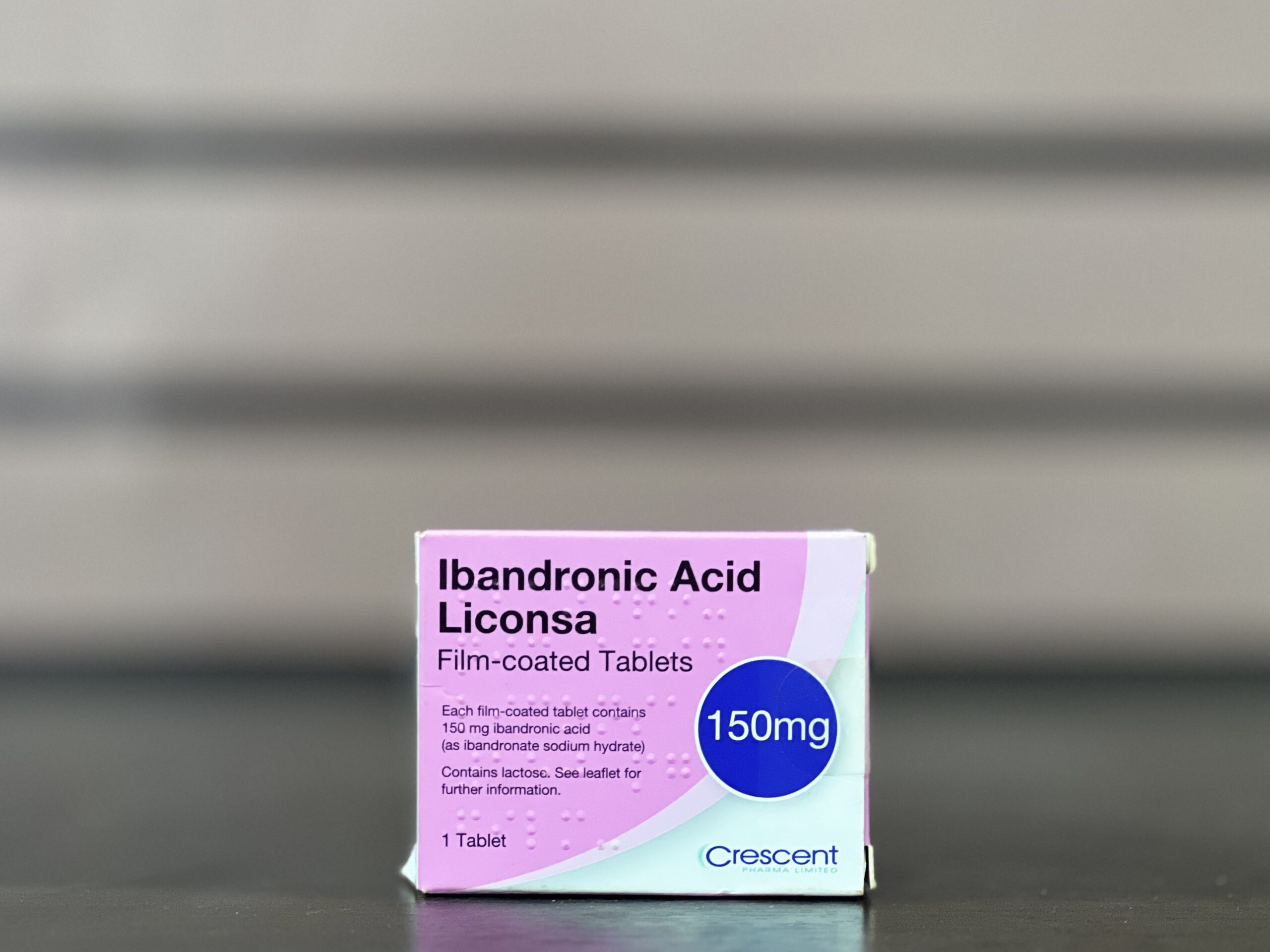 Ibandronic Acid Liconsa 150mg (often branded as Ibandronic Acid 150mg by Crescent or similar generic labelling) is an oral bisphosphonate used primarily for the treatment and prevention of postmenopausal osteoporosis in women. It increases bone mineral density, reduces the risk of vertebral fractures, and helps prevent bone loss. It is taken as a once-monthly tablet to improve patient adherence compared to weekly regimens. It works by inhibiting osteoclast activity, reducing bone resorption. In Ghana (Accra), it is a prescription medication commonly available in pharmacies for osteoporosis management in postmenopausal women or those at high risk of fractures.