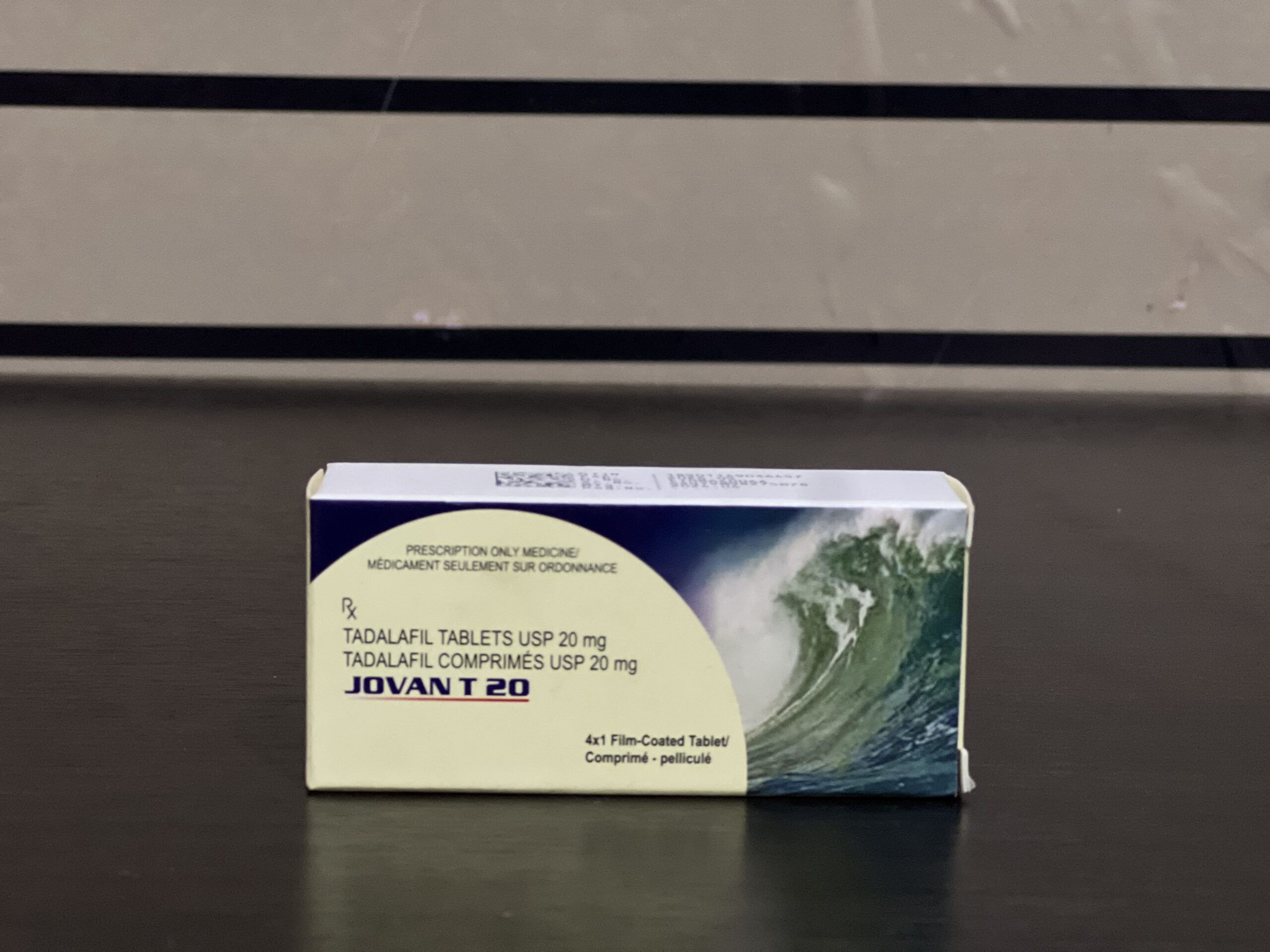 Jovan T 20 is a brand name for Tadalafil 20 mg tablets. It is used for treating erectile dysfunction (impotence) in men by helping achieve and maintain erection via improving blood flow.