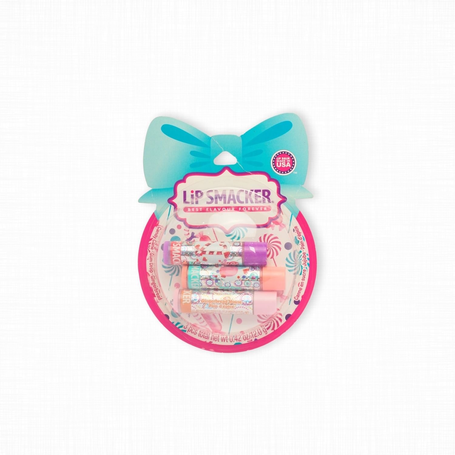 The Lip Smacker Lip Balm Candy Trio is a set of three lip balms flavored and designed to resemble popular candies. They come in a small, collectible tin and are marketed as a fun and giftable option.