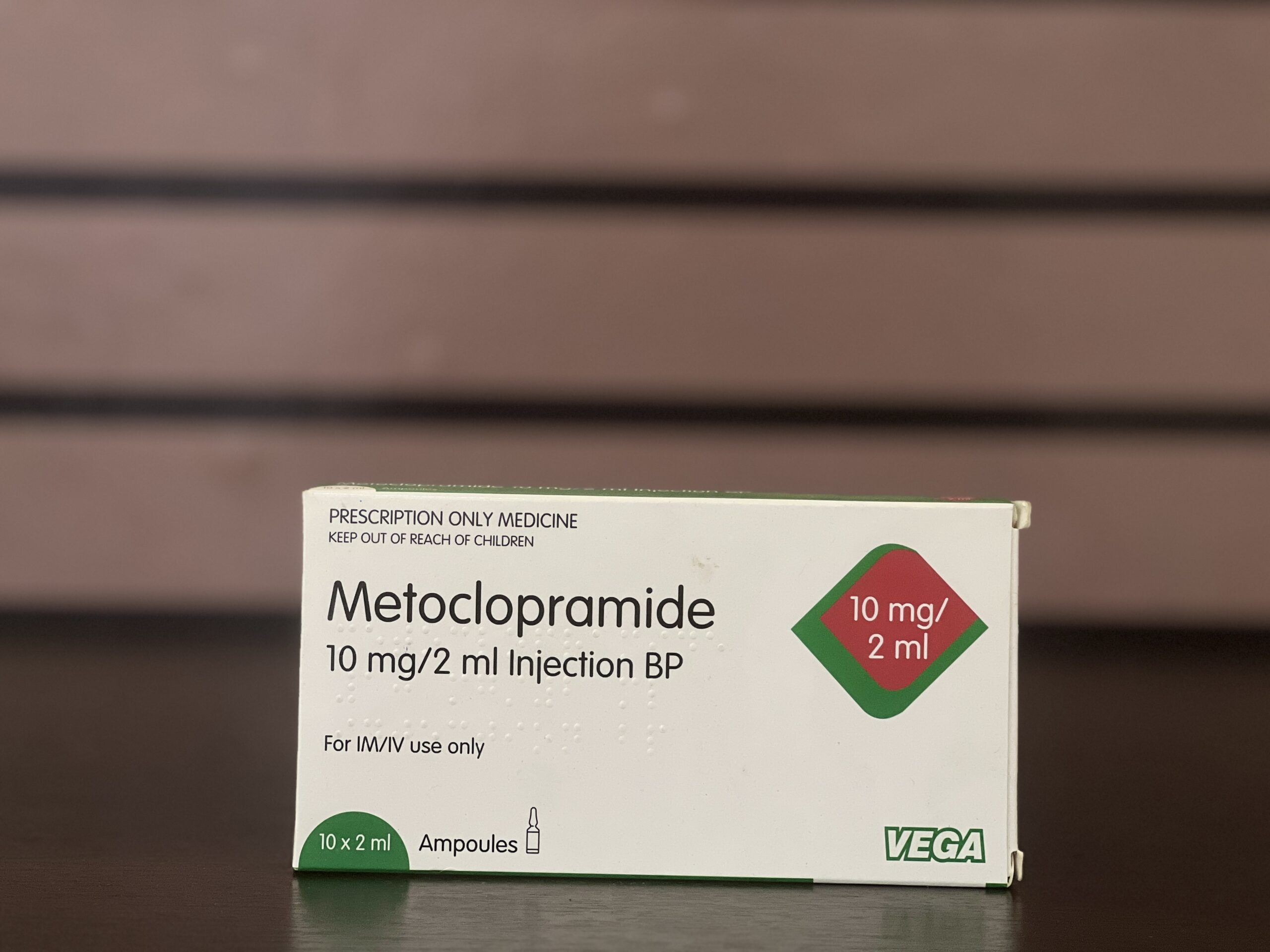 Metoclopramide injection is typically given into a muscle or vein by a healthcare professional.
