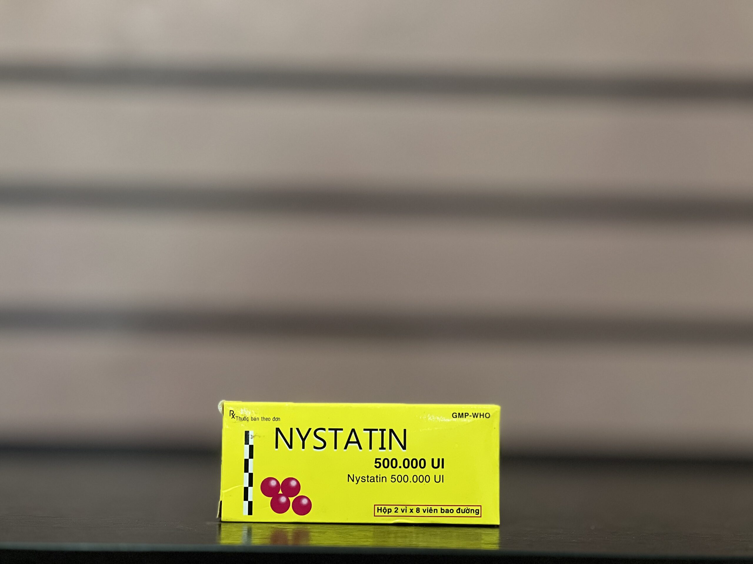 - Oral tablet form at 500,000 IU strength (distinct from oral suspension 100,000 IU/mL for thrush, or topical/vaginal forms).