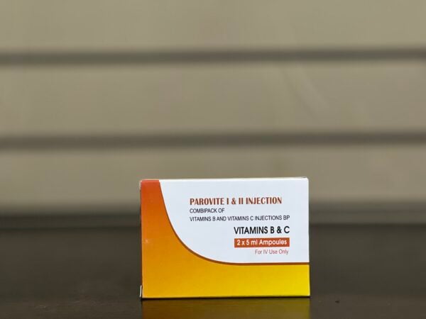 Parovite is available as a two-ampoule injection system, with each ampoule containing different components that are mixed prior to administration.