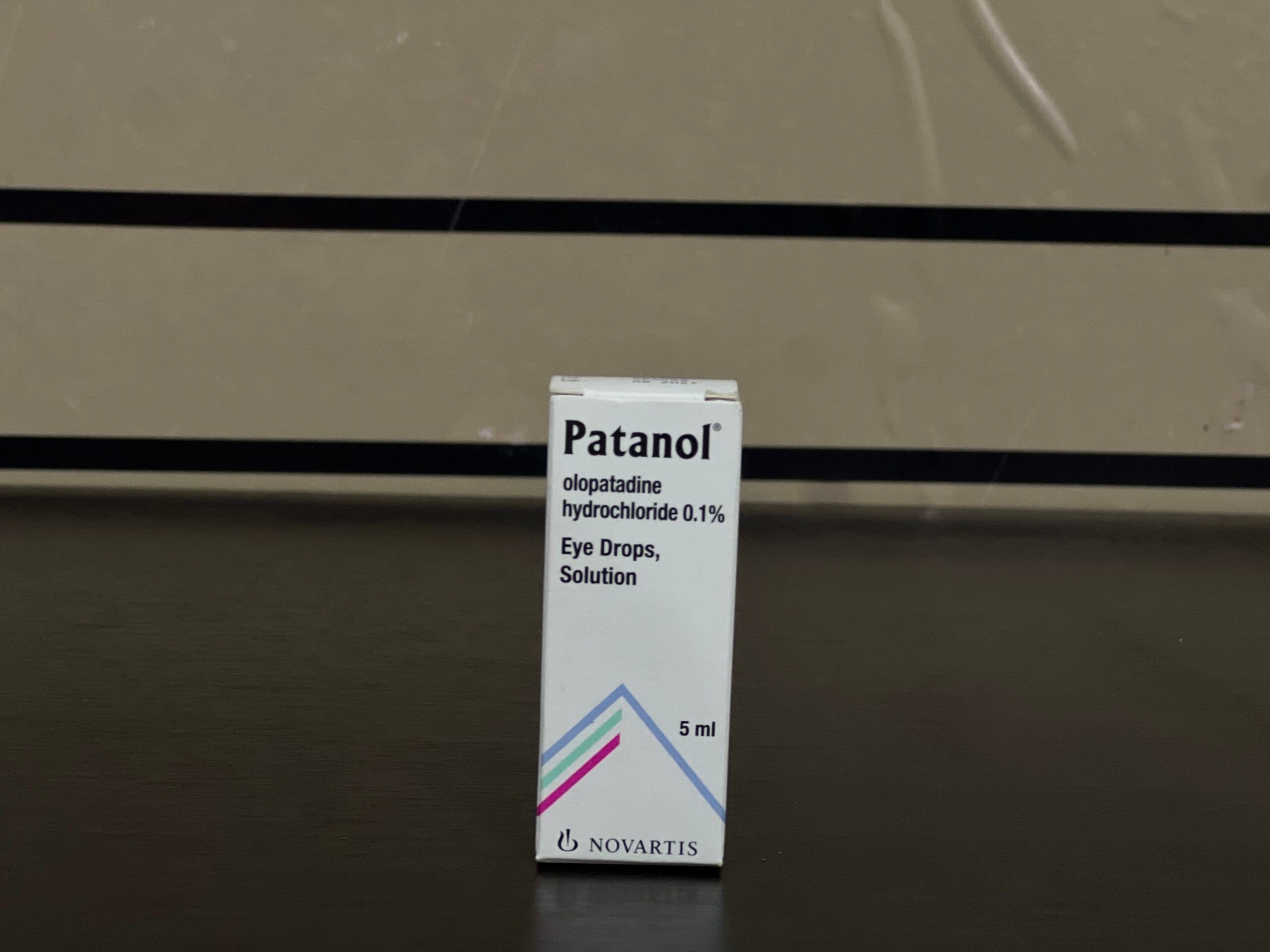 Patanol Eye Drops 1% contain the active ingredient olopatadine hydrochloride, an antihistamine used to alleviate symptoms of allergic conjunctivitis, such as itching, redness, and swelling of the eyes.