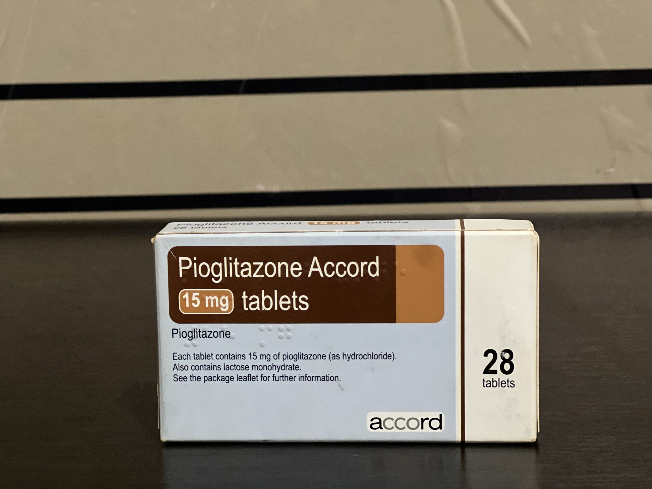 - Pioglitazone Tab 15mg (lower strength), Pioglitazone Tab 45mg (higher strength)