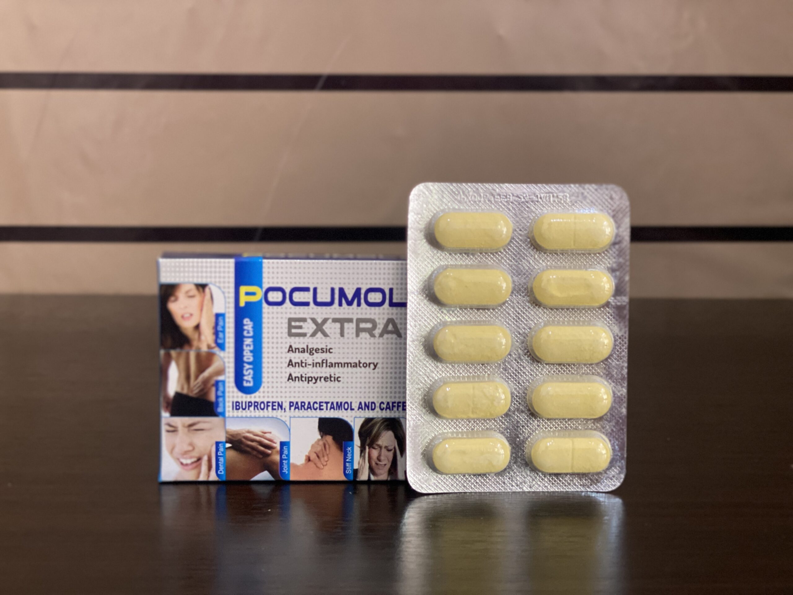Pocumol Extra Tab is a pain-relieving and antipyretic medication containing a combination of Paracetamol and Caffeine, used to treat headaches, fever, and minor aches.