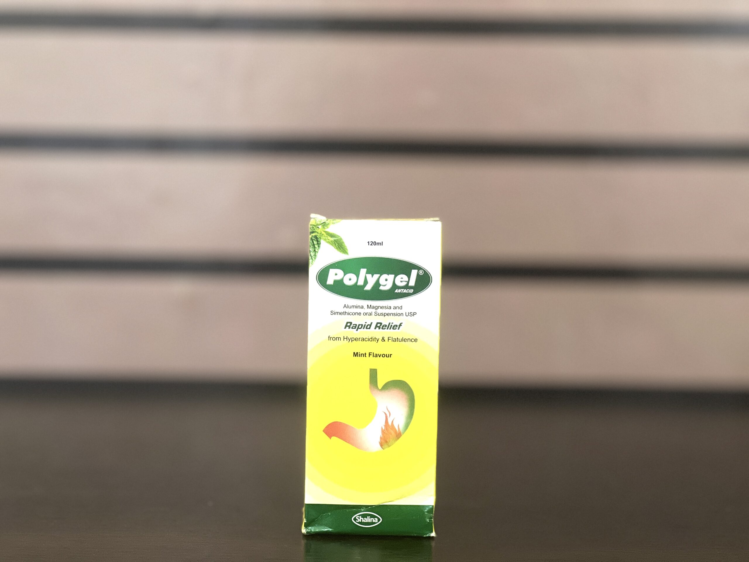 Polygel Antacid Rapid Relief 120ml (also listed as Polygel Suspension or Polygel Syrup in mint flavor) is an oral antacid suspension that provides fast, effective relief from heartburn, acid indigestion, sour stomach, acid reflux, dyspepsia, gastritis, and gas-related discomfort (bloating, flatulence). It neutralizes excess stomach acid while the simethicone component breaks down gas bubbles for quicker relief. It is a popular OTC product in Ghana (widely available in Accra pharmacies like Caplet Cares, Country Medical Pharmacy, Victory Drugs, and others) for symptomatic treatment of acid-peptic disorders.