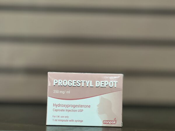 Progestyl Depot 250mg/ml (Hydroxyprogesterone Caproate Injection USP by Donpak) is a long-acting injectable progestogen used to prevent recurrent miscarriage in women with a history of spontaneous abortion due to progesterone deficiency. It is administered as a depot injection to provide sustained progesterone support during early pregnancy, helping maintain the uterine lining and reduce the risk of miscarriage. It is typically used in women with proven or suspected luteal phase defect or recurrent pregnancy loss. In Ghana (Accra), it is a common prescription medication used in obstetrics and gynecology clinics for threatened or recurrent miscarriage prophylaxis.