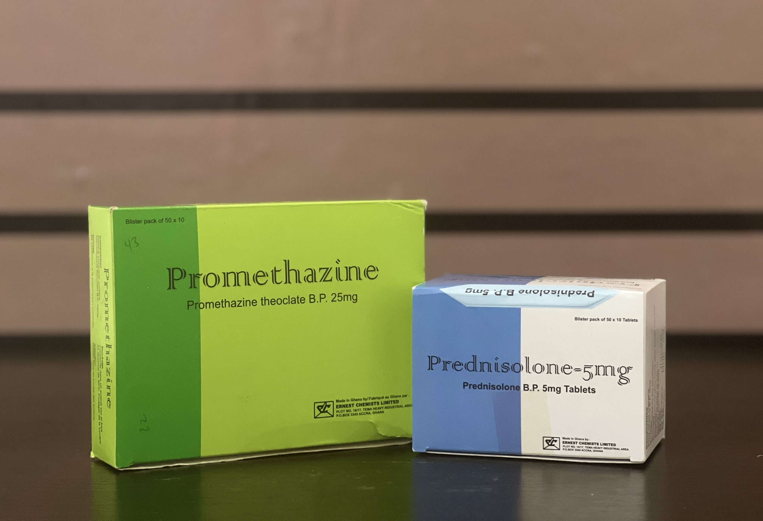 - Promethazine hydrochloride 12.5 mg or 25 mg per tablet