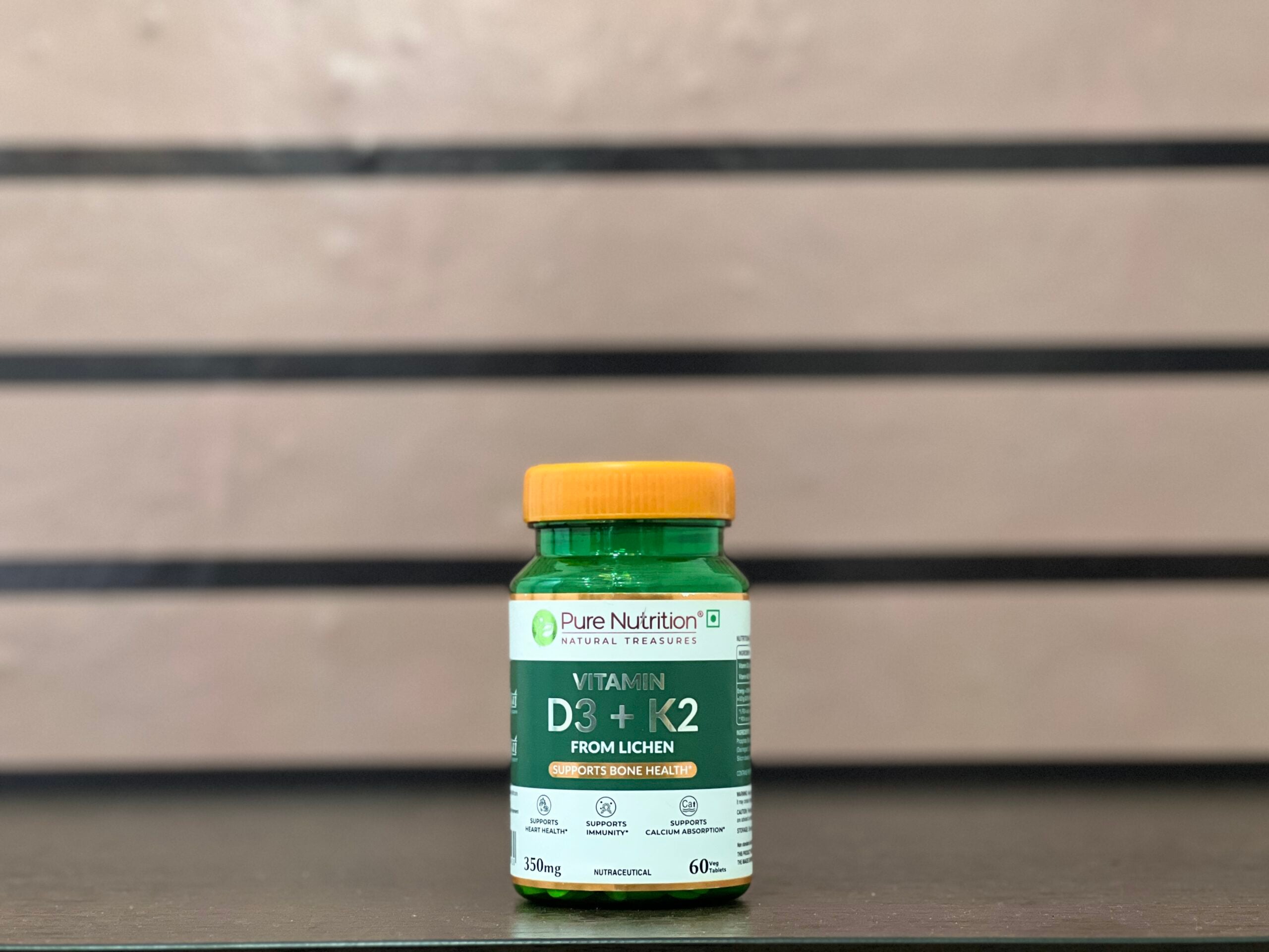 Varies by exact brand; common lichen D3 + K2 products are from NATURELO (US), Pure Nutrition, Inlife Healthcare, or similar Indian/US brands. In Ghana, marketed via local supplement importers/pharmacies (e.g., “We Care” or similar tags on imports).