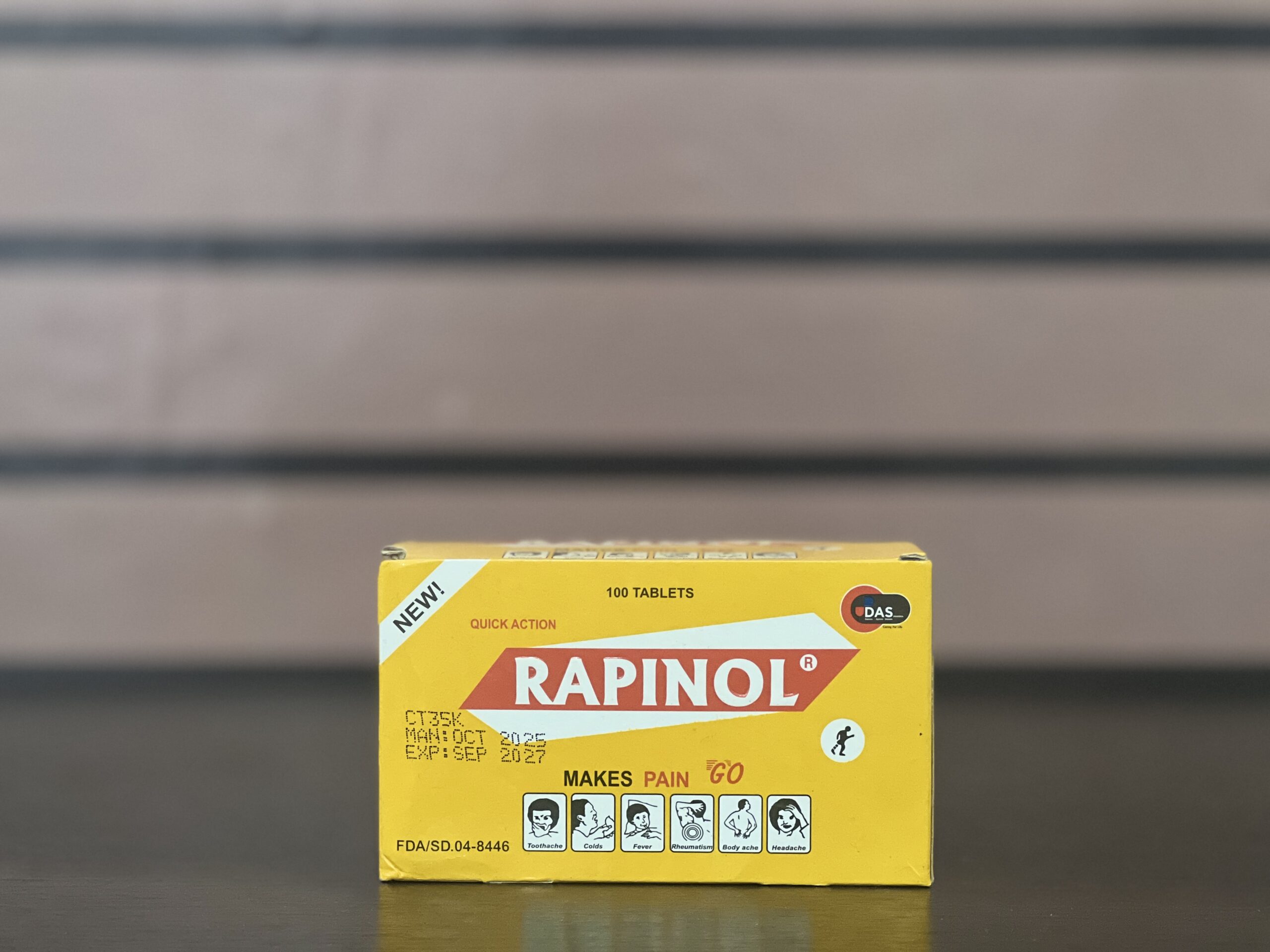 Rapinol tablet is generally marketed as a pain relief or analgesic formulation, potentially used to relieve mild to moderate pain, fever, or inflammation. It may also be a muscle relaxant or supplement-based remedy, depending on the variant.