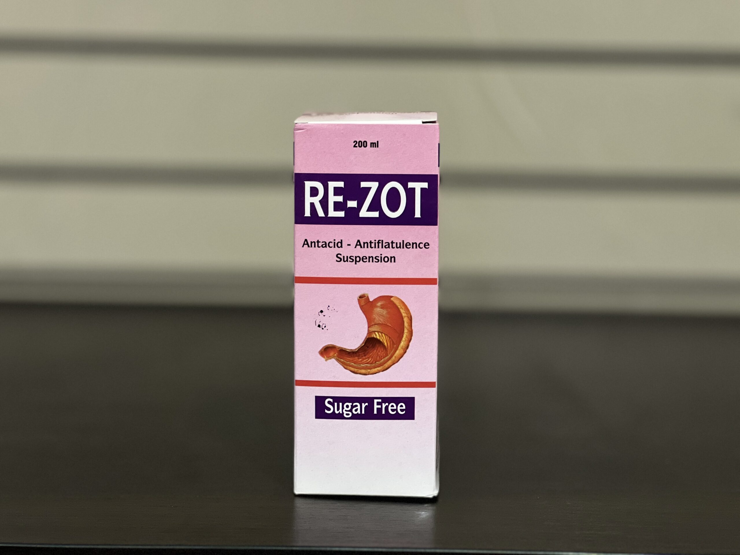 Re-Zot is a combination antacid syrup used to relieve symptoms of gastric hyperacidity, heartburn, acid indigestion, and related gastric discomfort. It neutralizes excess stomach acid and provides symptomatic relief.