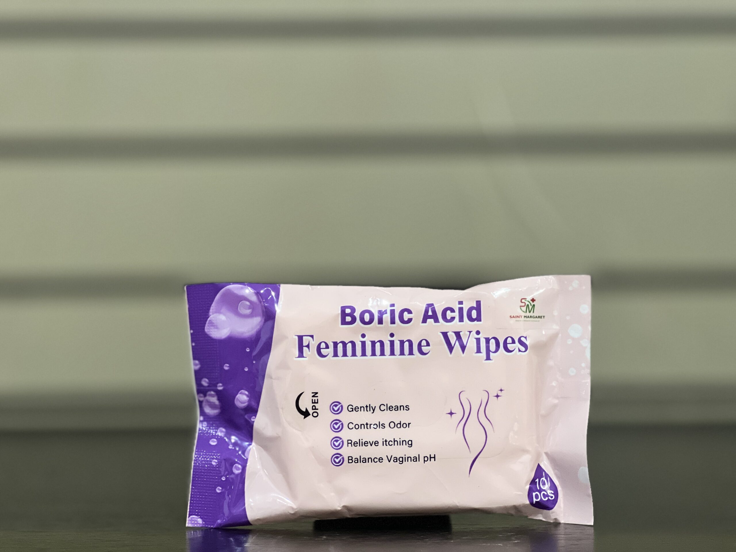 Brand: Saint Margaret. I could not locate a clearly stated manufacturer company name or regulatory registration details for the specific “Saint Margaret Boric Acid Feminine Wipes” version.