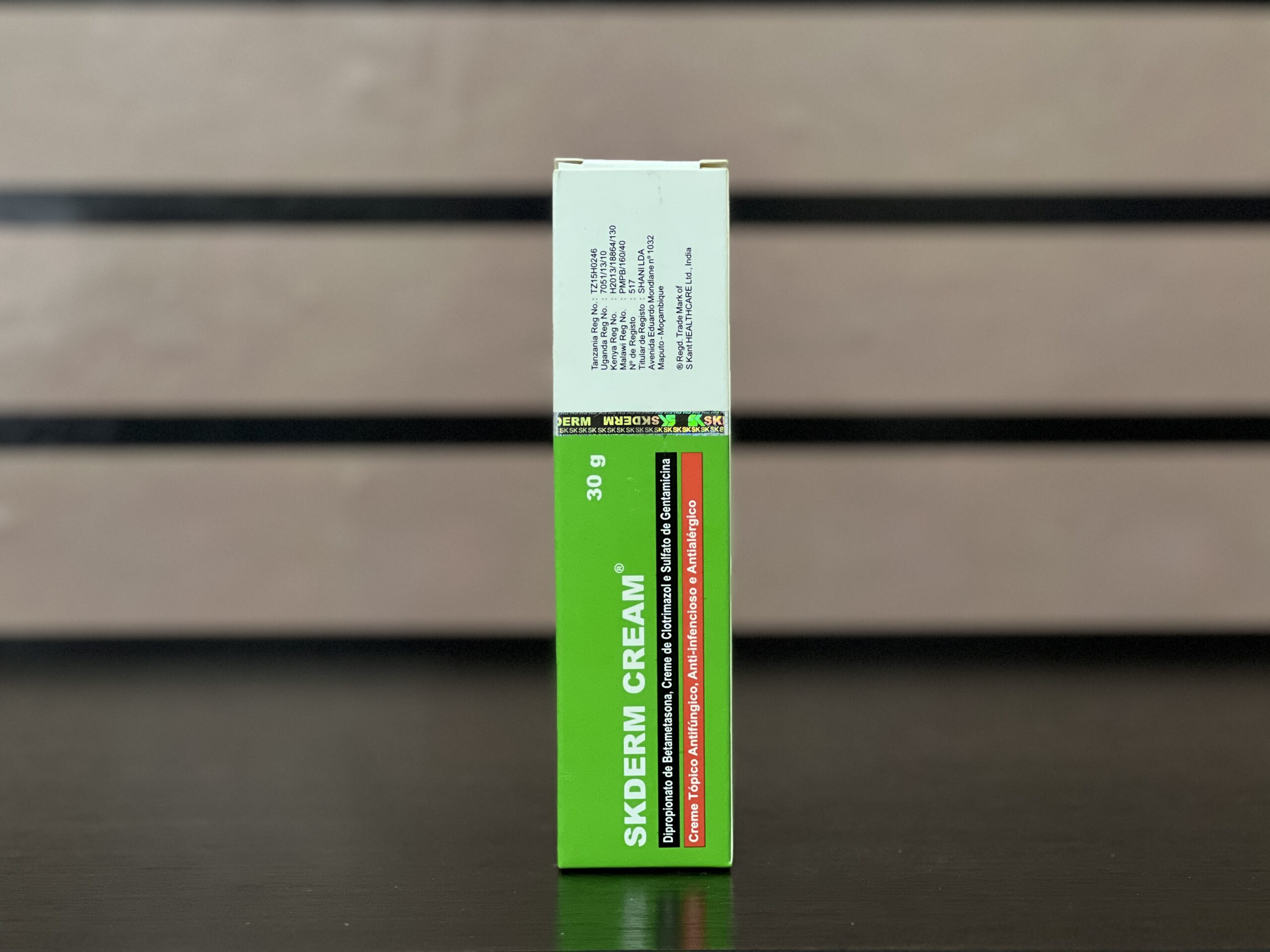 Skderm Cream 30g is a triple-action topical cream combining a corticosteroid, antifungal, and antibiotic. It is indicated for the treatment of inflammatory, pruritic (itchy), and infected skin conditions, including symptomatic inflammatory tinea pedis (athlete’s foot), tinea cruris (jock itch), tinea corporis (ringworm), and other superficial bacterial/fungal skin infections with inflammation. It relieves redness, itching, swelling, and infection but carries risks of skin thinning, lightening, or dependency with misuse.