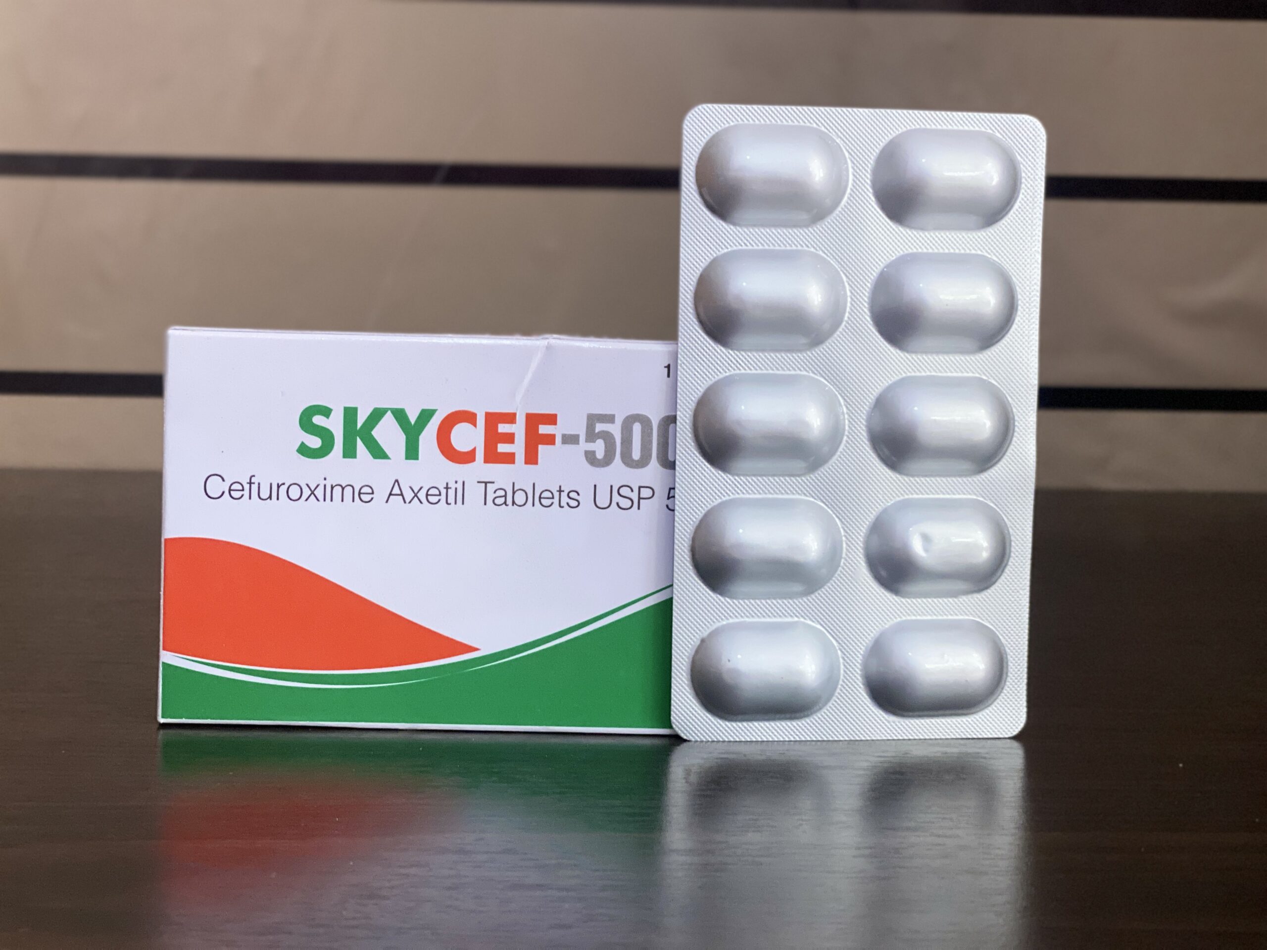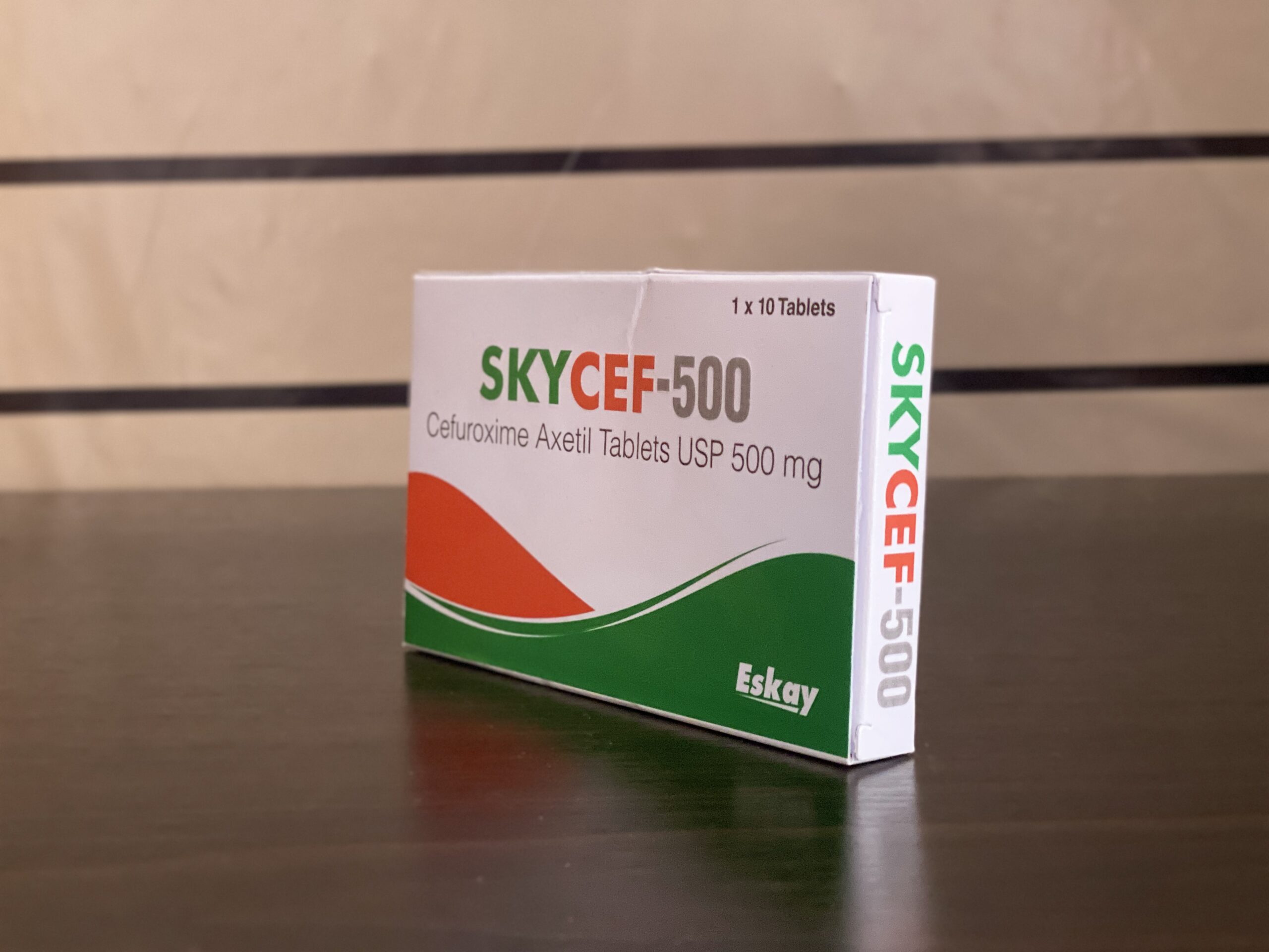 Skycef 500mg Tablets (Cefuroxime Axetil USP 500mg by Eskay) is a second-generation cephalosporin antibiotic used to treat various bacterial infections. It is effective against a broad range of gram-positive and gram-negative bacteria, particularly for respiratory tract infections (e.g., bronchitis, pneumonia, sinusitis, tonsillitis/pharyngitis), urinary tract infections, skin and soft tissue infections, and gonorrhea. The 500mg strength provides a convenient twice-daily dose for adults. It is widely available in Ghanaian pharmacies (e.g., in Accra at Scab Pharmacy, Beybee Pharmacy, Country Medical Pharmacy) as an affordable generic option for bacterial infections requiring oral cephalosporin therapy.
