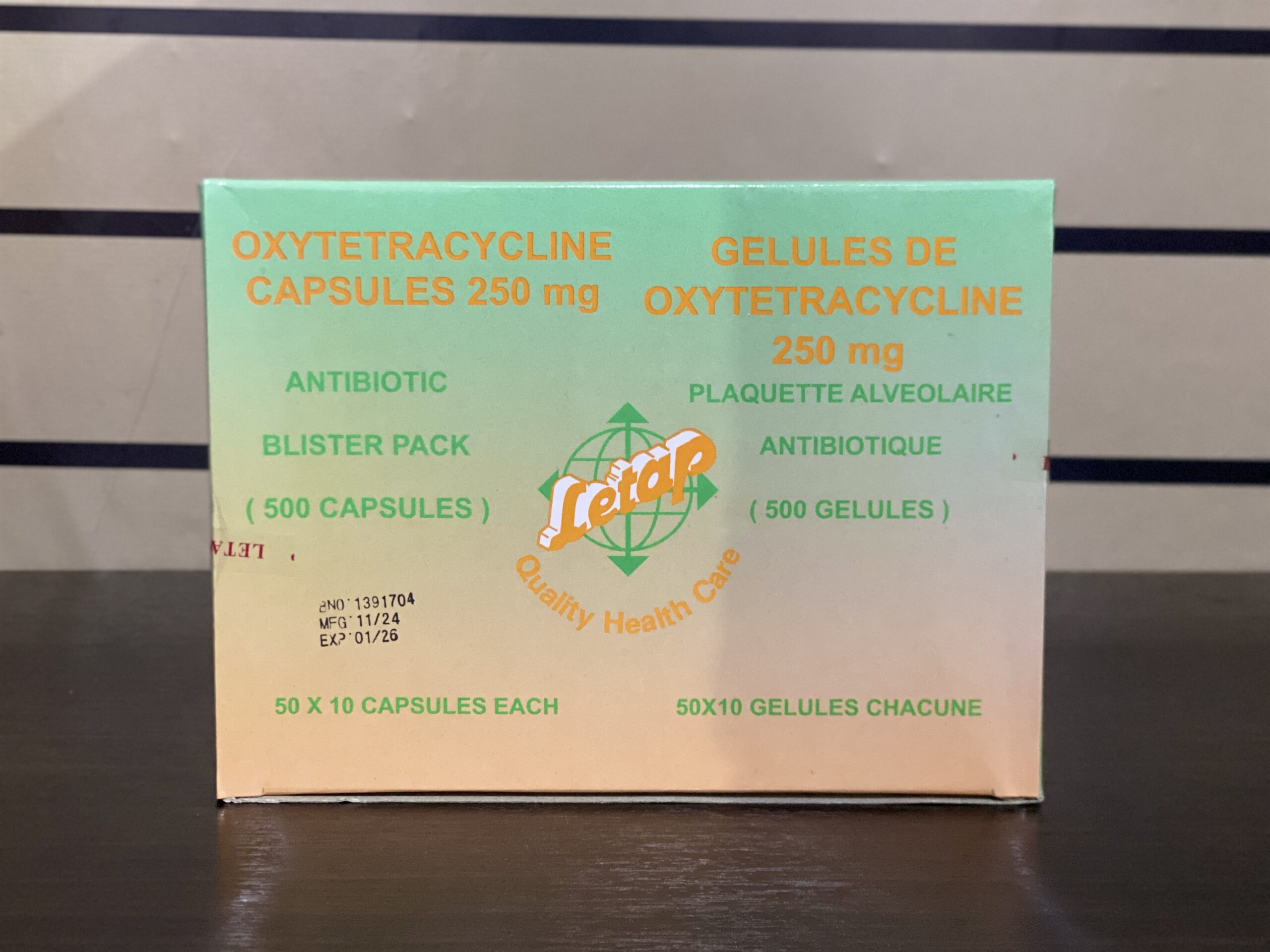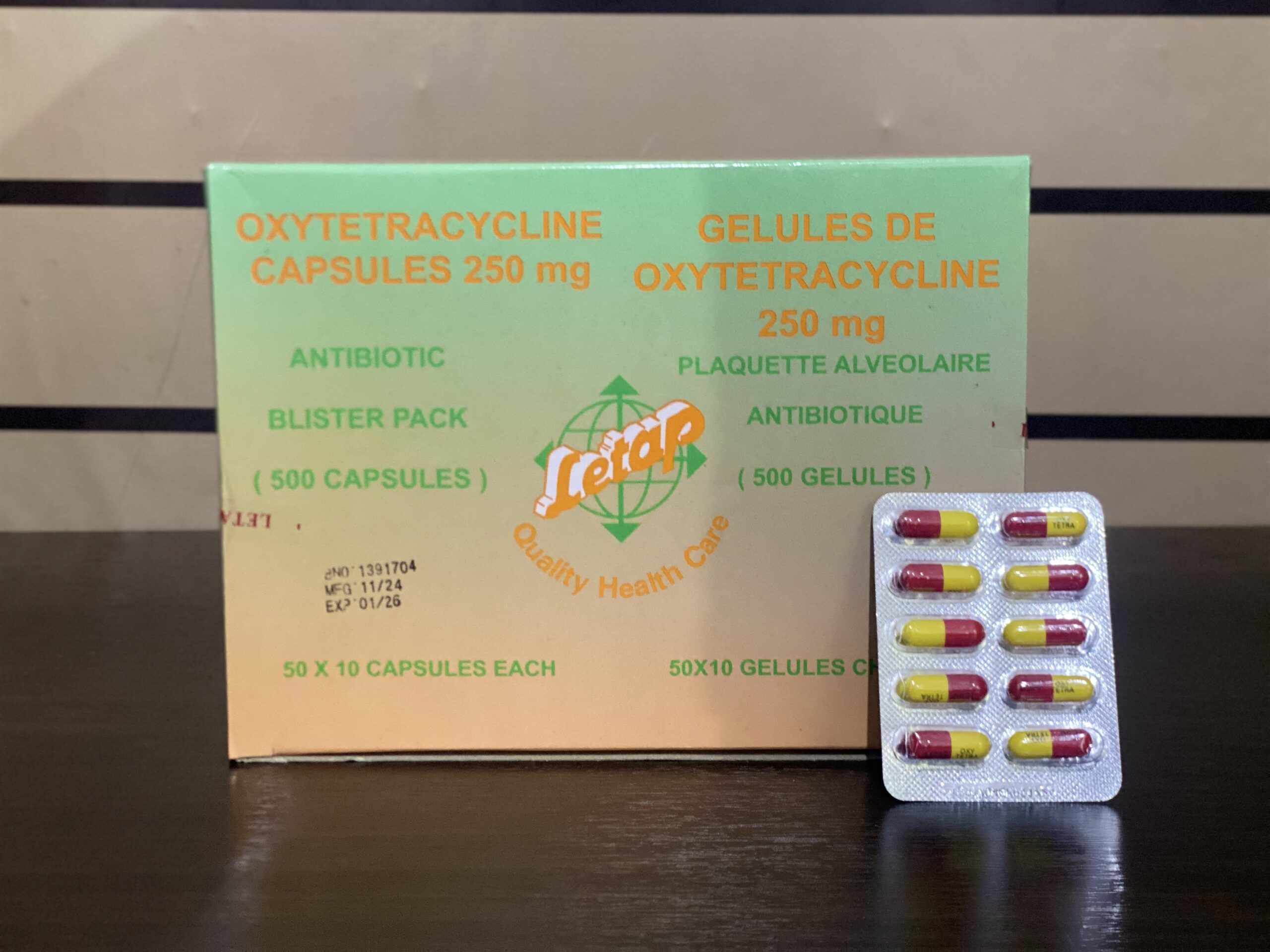 - Tetracycline hydrochloride 250mg or 500mg.