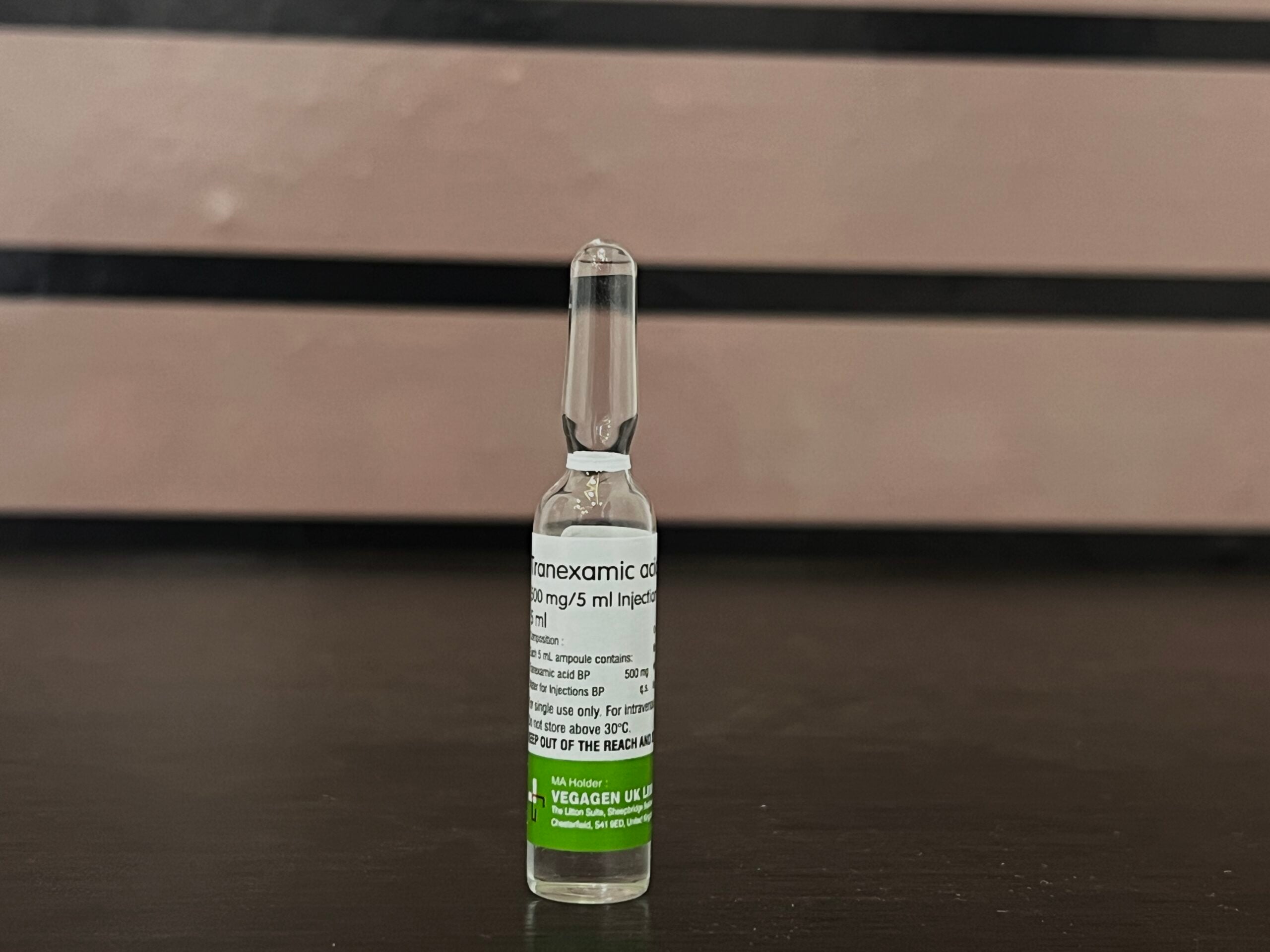 Tranexamic acid injection 500mg/5ml VEGAGEN UK is a sterile antifibrinolytic (anti-hemorrhagic) solution used to prevent or treat excessive bleeding caused by increased fibrinolysis (breakdown of blood clots). It is indicated for conditions such as heavy menstrual bleeding (menorrhagia), gastrointestinal bleeding, hemorrhagic urinary disorders (e.g., post-prostate surgery), epistaxis (nosebleeds), traumatic hyphema, obstetric/gynecological bleeding, dental procedures in hemophiliacs, and peri/post-operative bleeding (including cardiac, orthopedic, or ENT surgery). It works by competitively inhibiting plasminogen activation and fibrinolysis, stabilizing clots.