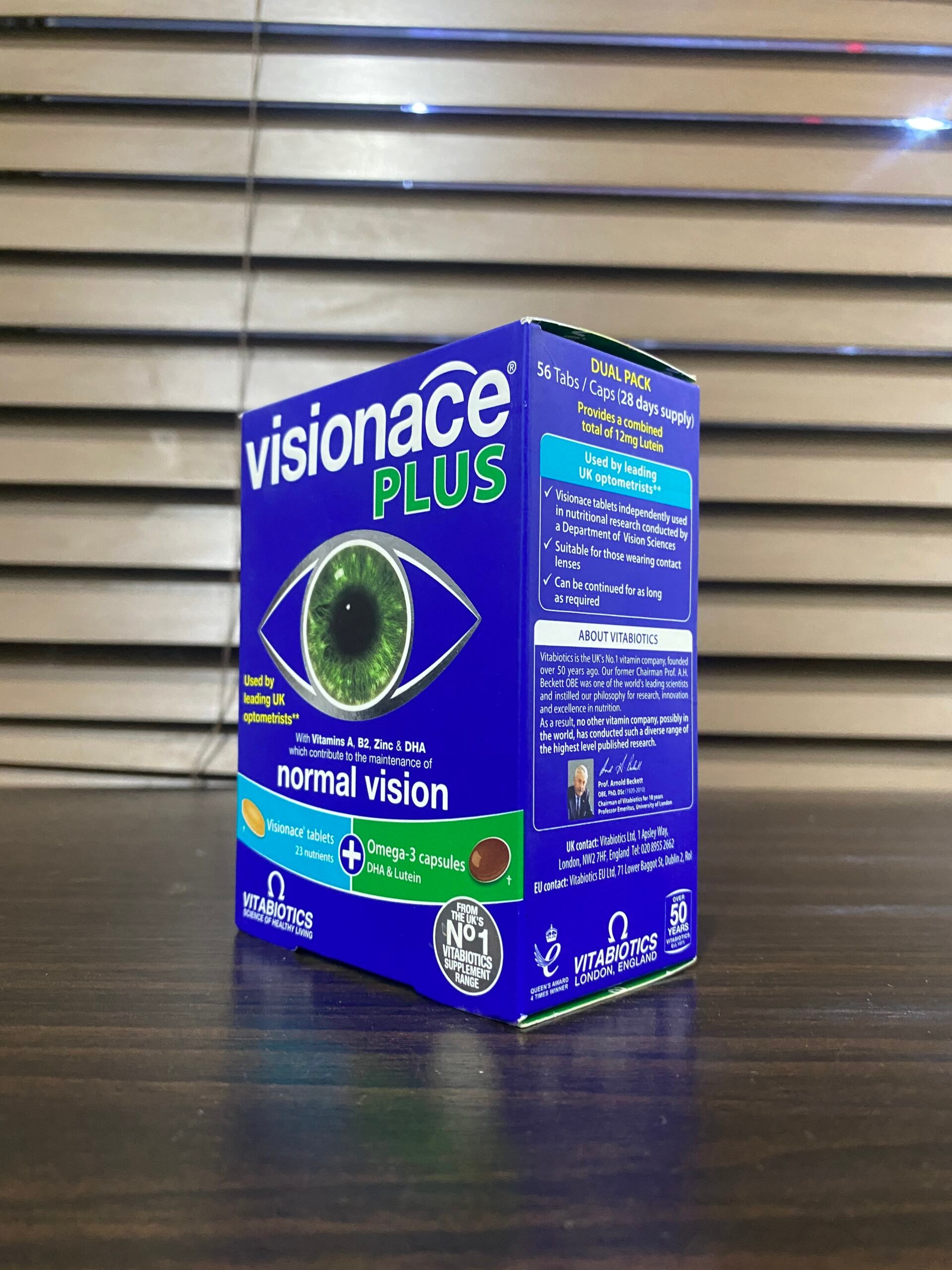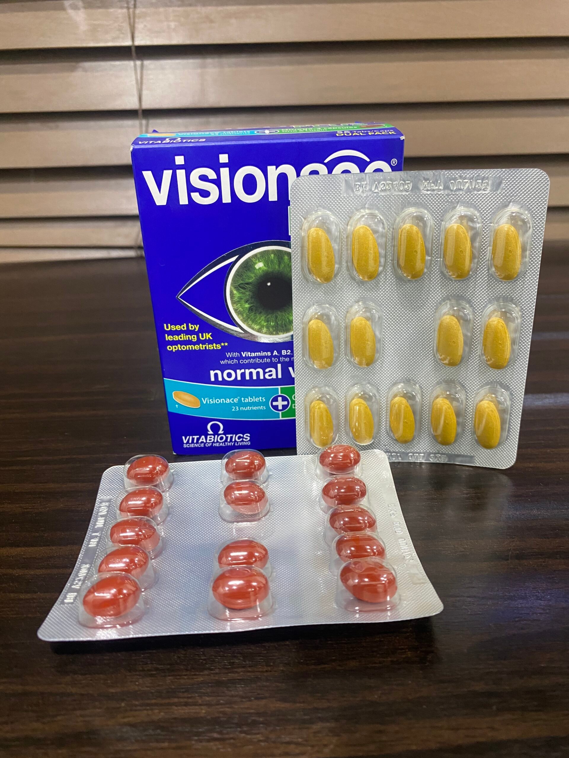 Visionace Plus 56”s are capsules that help support eye health and function. They contain vitamins, minerals and antioxidants.