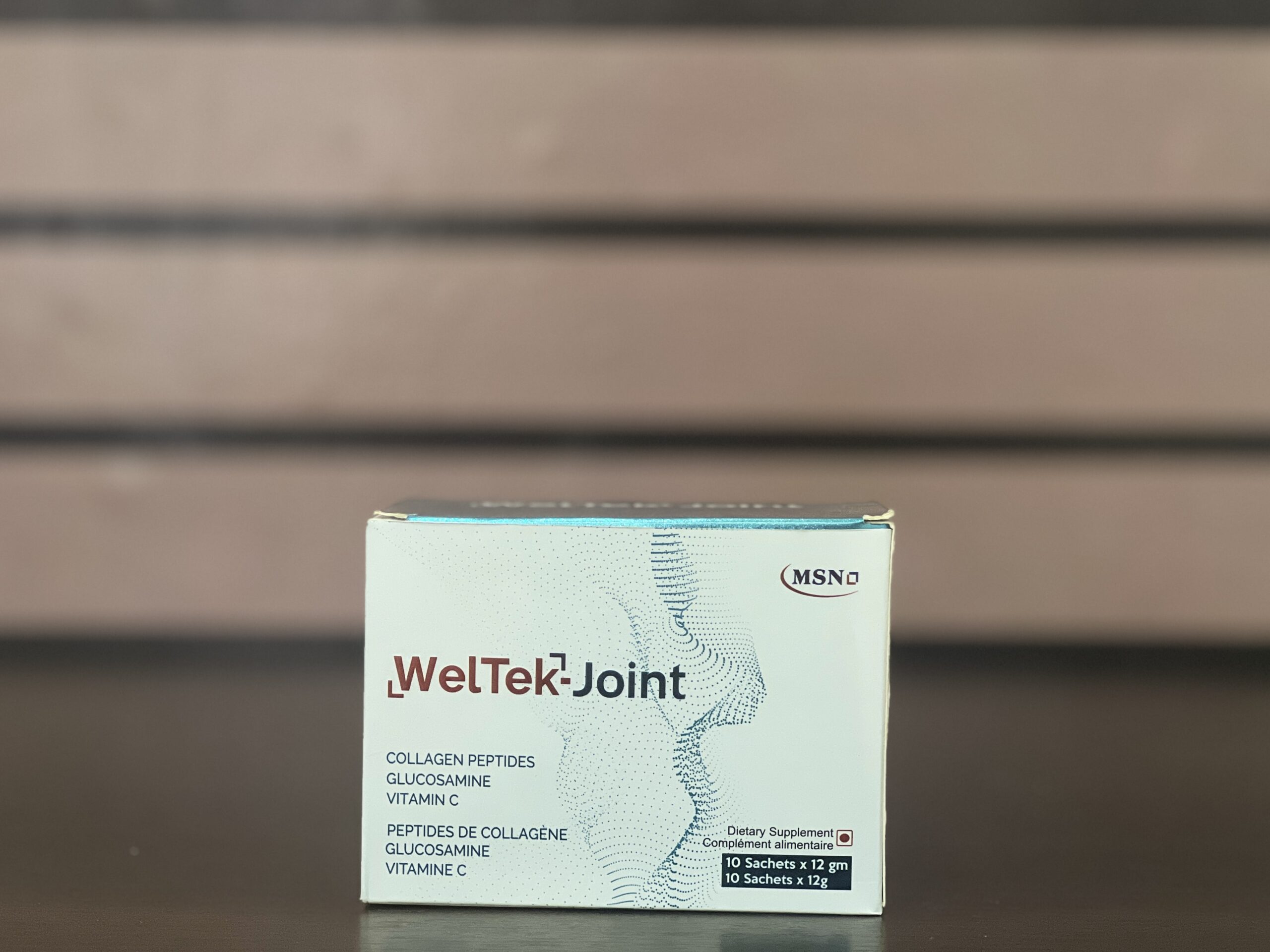 Weltek-Joint (also styled as WelTek-Joint or WELTEK JOINT) is a dietary supplement in sachet form designed to support joint health, reduce joint pain and stiffness, improve flexibility and mobility, and aid in the management of conditions like osteoarthritis, rheumatoid arthritis, or general joint discomfort. It provides building blocks for cartilage repair and maintenance, often used for chronic joint issues or post-injury recovery.