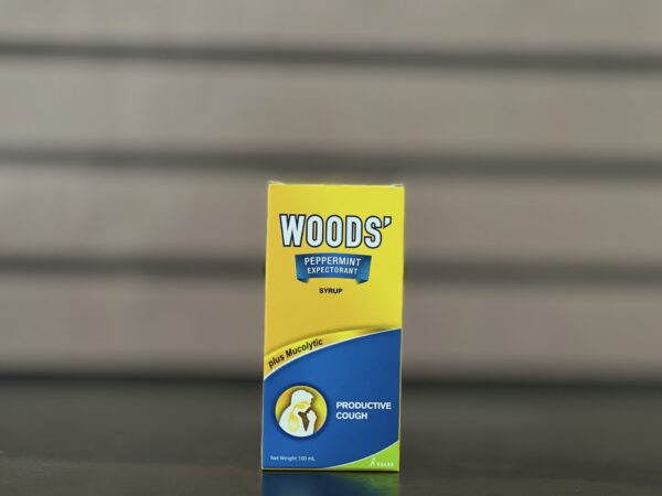Wood’s Expectorant Syrup (also commonly known as Woods’ Peppermint Expectorant Cough Syrup) is an over-the-counter cough medicine formulated to relieve productive (wet) coughs with phlegm. It helps thin and loosen mucus in the airways, making it easier to cough up, and soothes the throat with a peppermint flavor. It is indicated for conditions like bronchitis, productive cough due to colds/flu, and chest congestion.