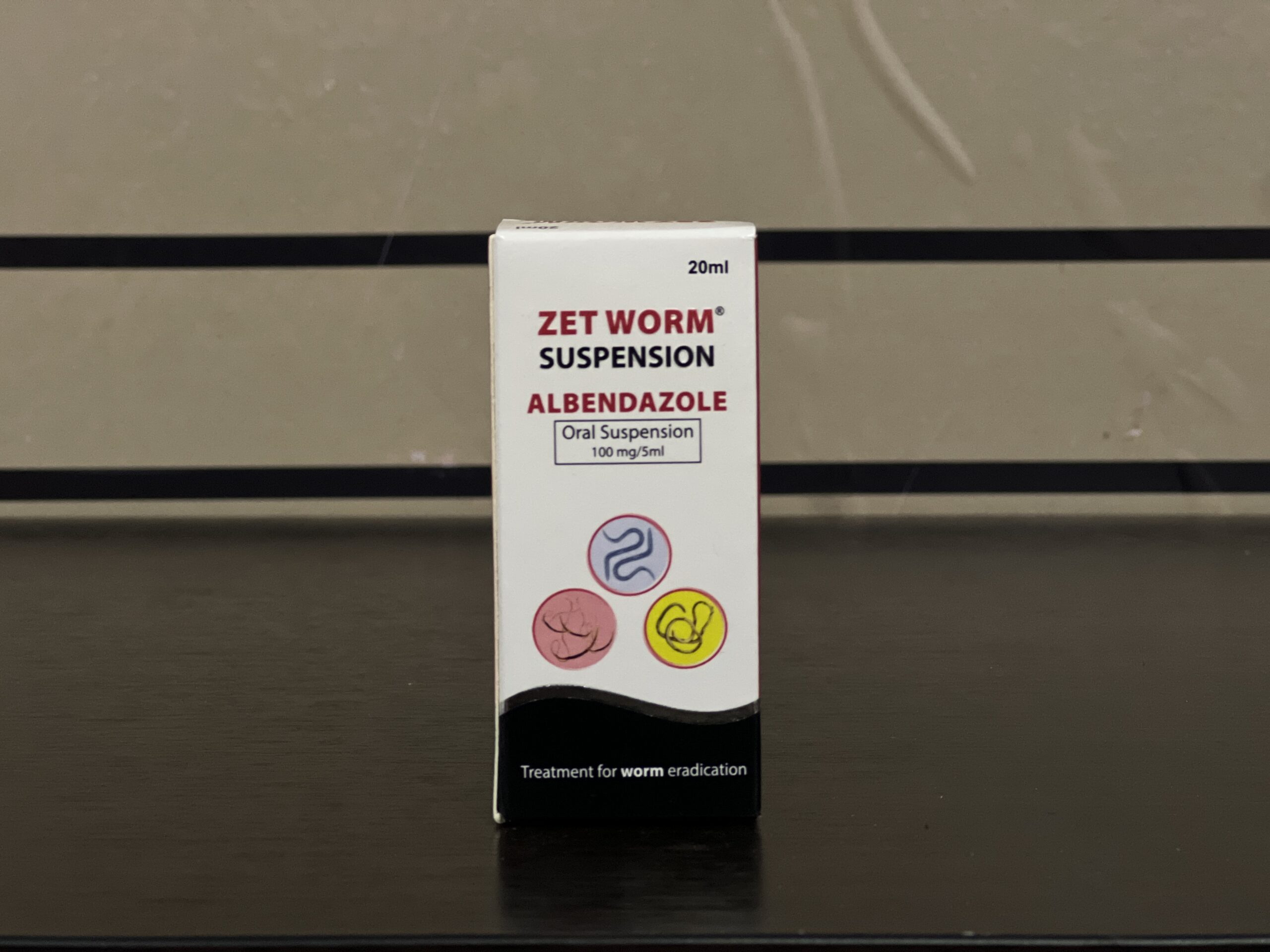 Each 5 ml of suspension contains 100 mg of albendazole.