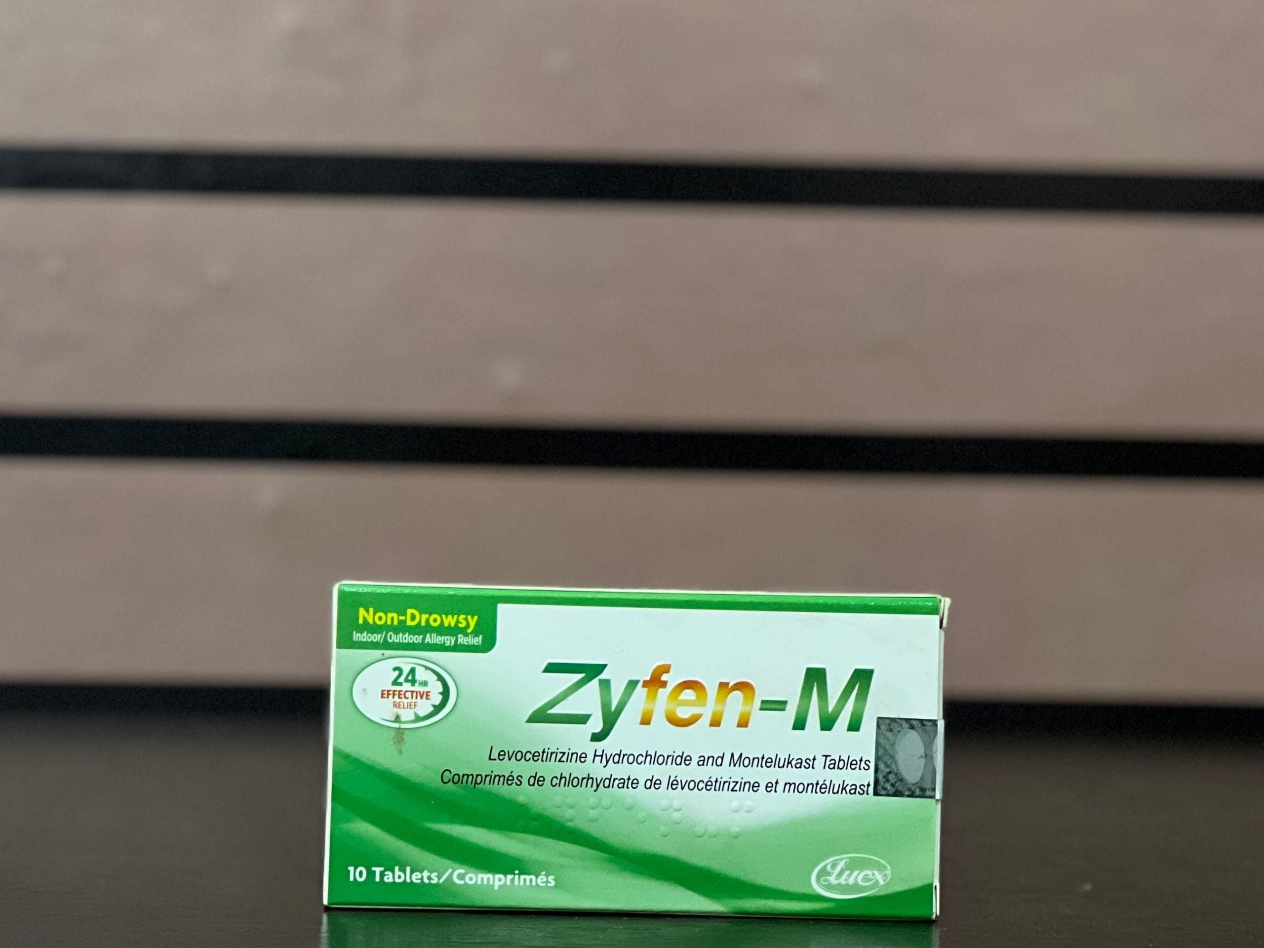 Variant: Tablets (typically 120 mg fexofenadine + 10 mg montelukast or 180 mg fexofenadine + 10 mg montelukast; pack of 10 tablets common; “Zyfen-M” denotes montelukast combination variant of Luex’s Zyfen range).